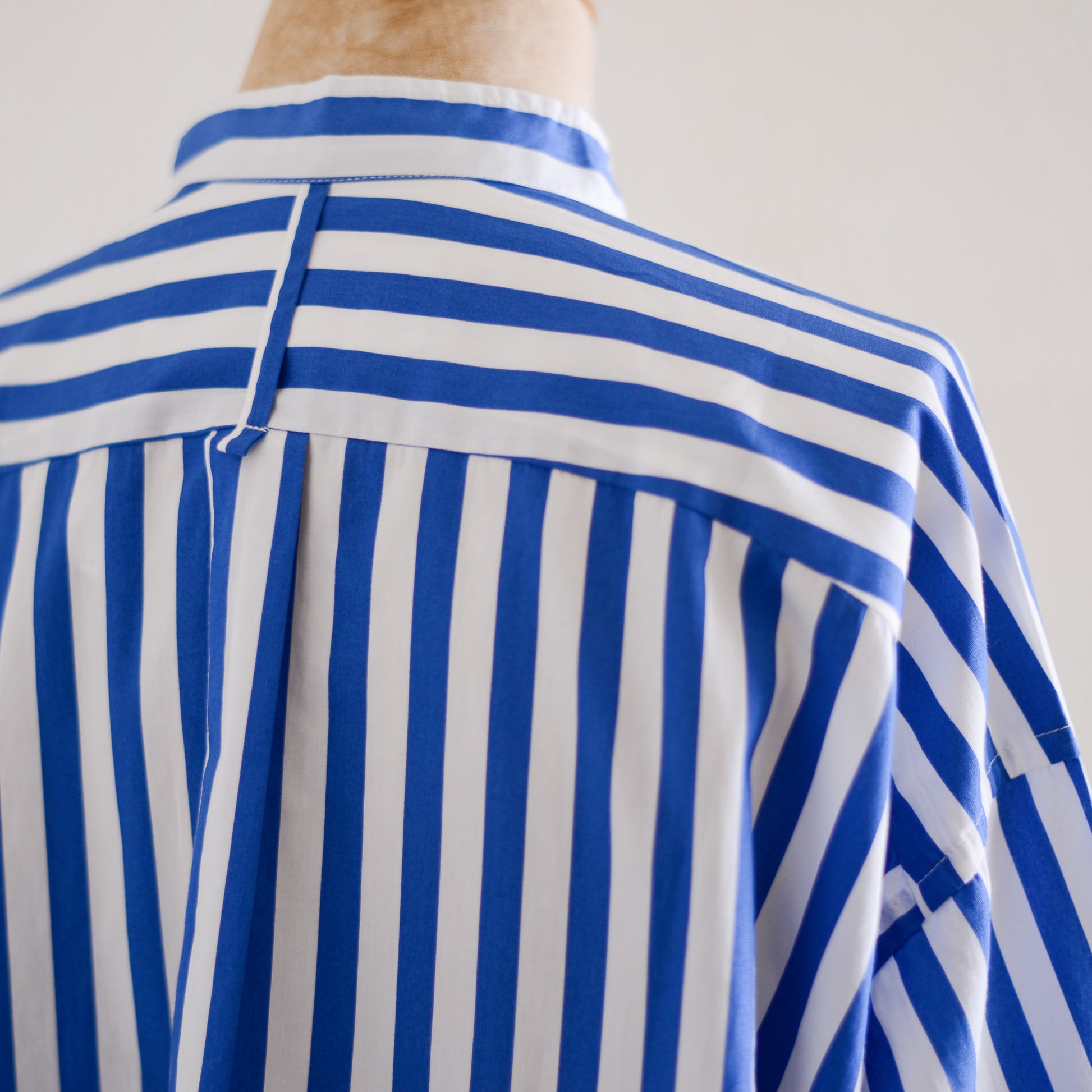コットンバンドカラーストライプシャツ Off White ×Blue