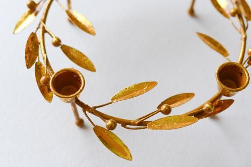 オリーブの葉と実がリースのように円形に形作られいます。