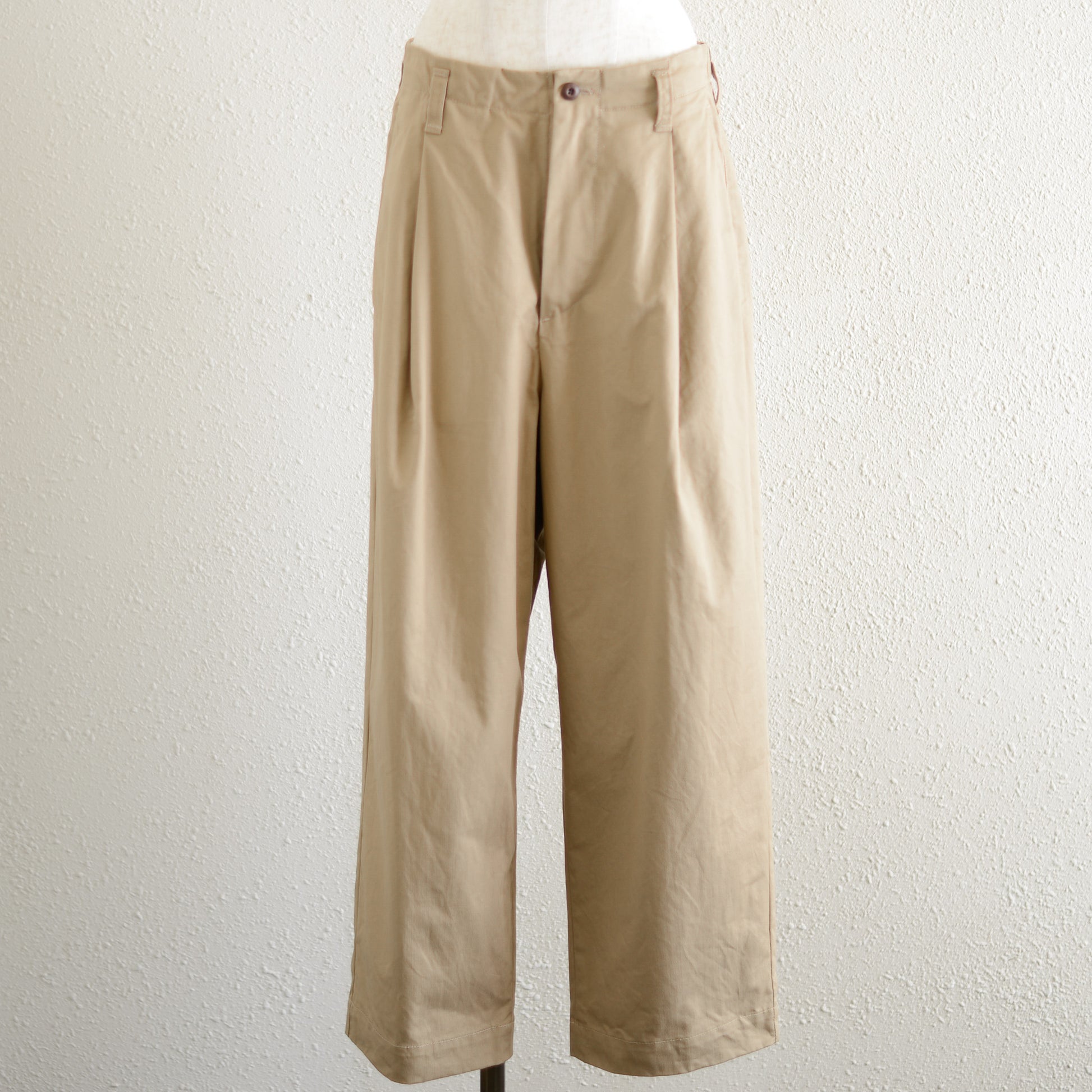 裾に向かって緩やかに細くなるワイド幅のテーパードシルエットは、