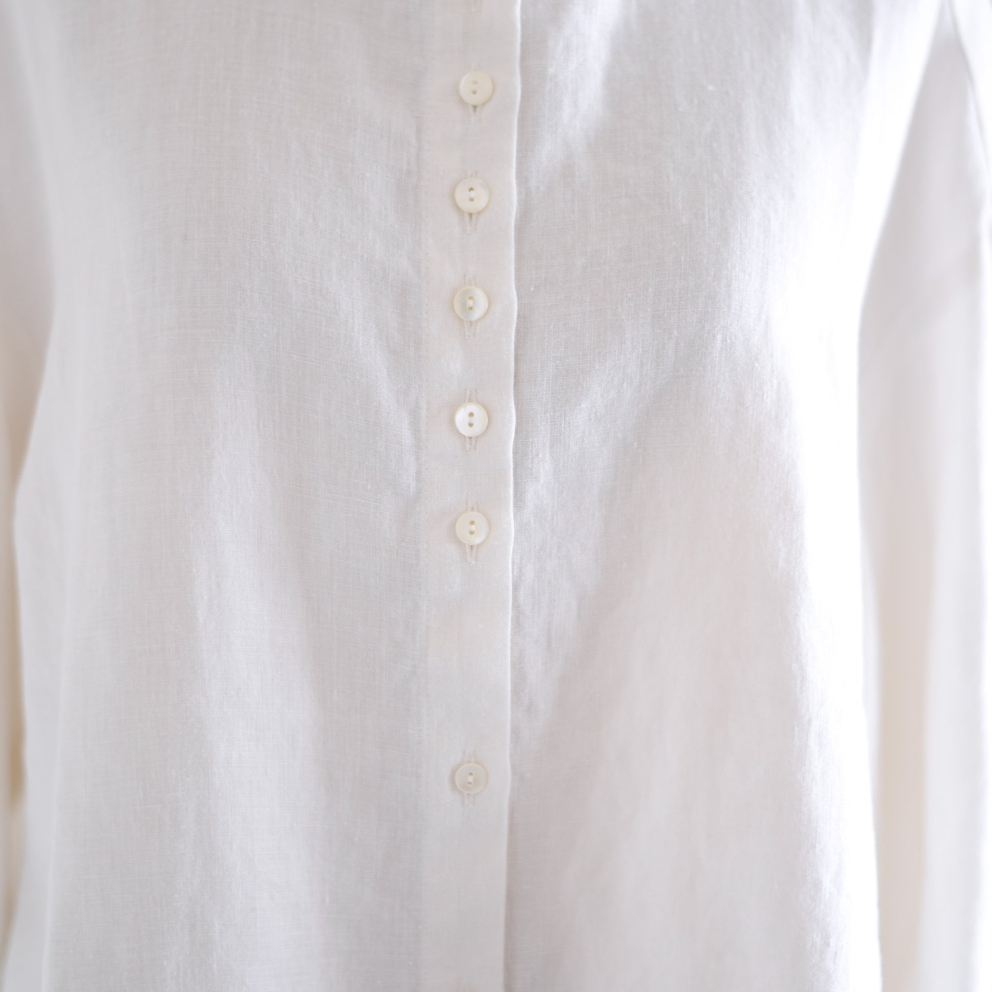しっかりとしたリネン生地を使用したこのブラウスは、