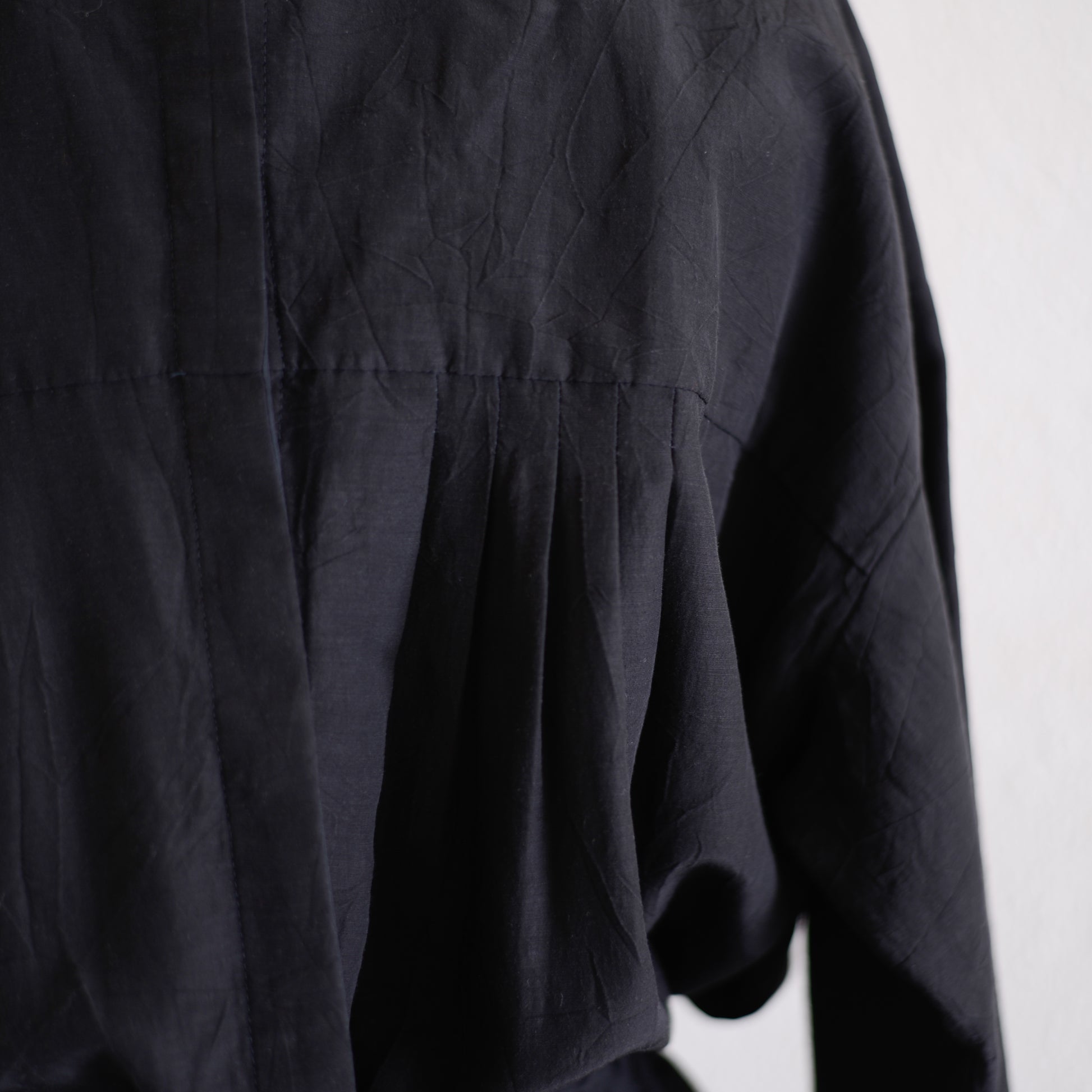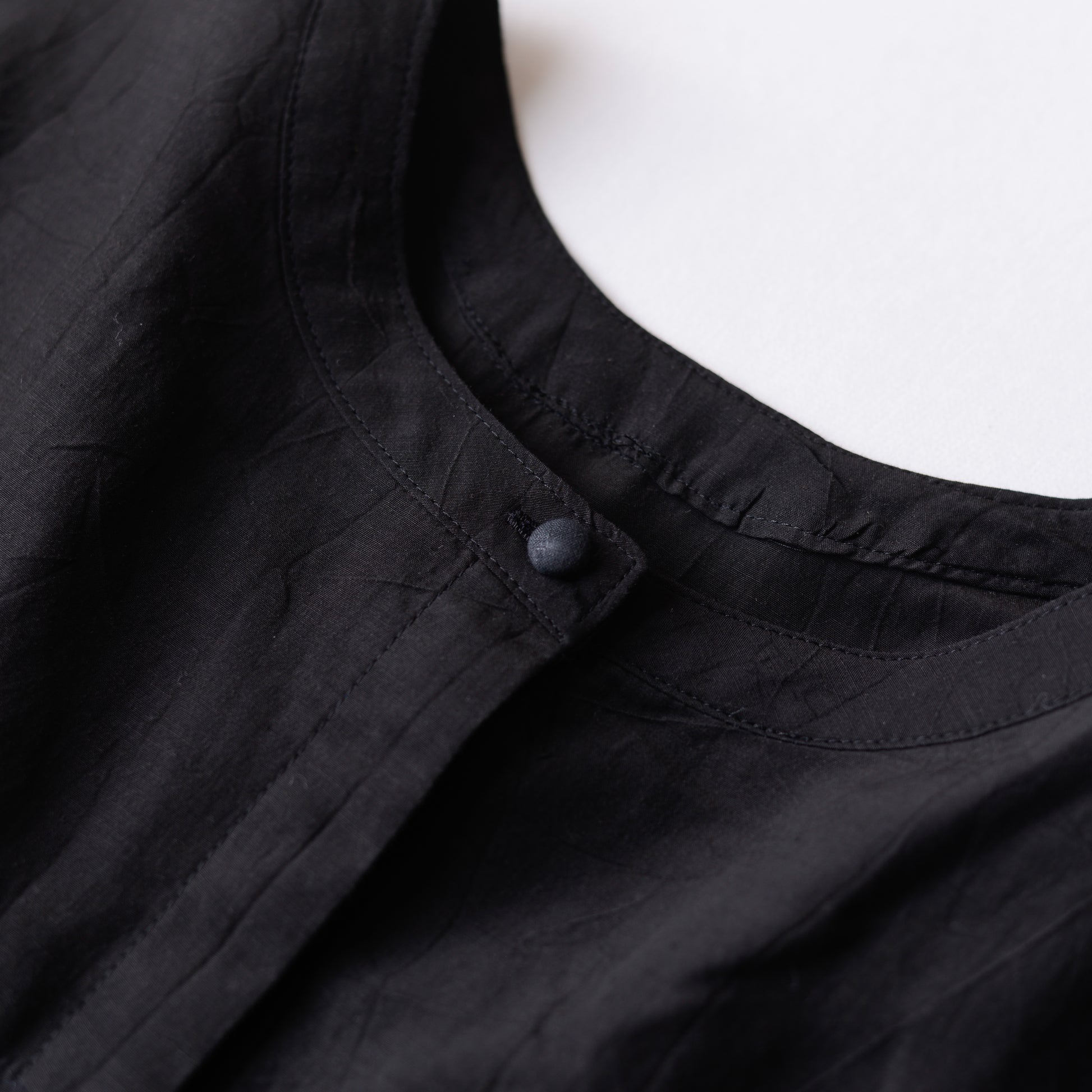 The black color highlights the glossy texture of the fabric, giving it a quiet presence that goes beyond just being "just black."