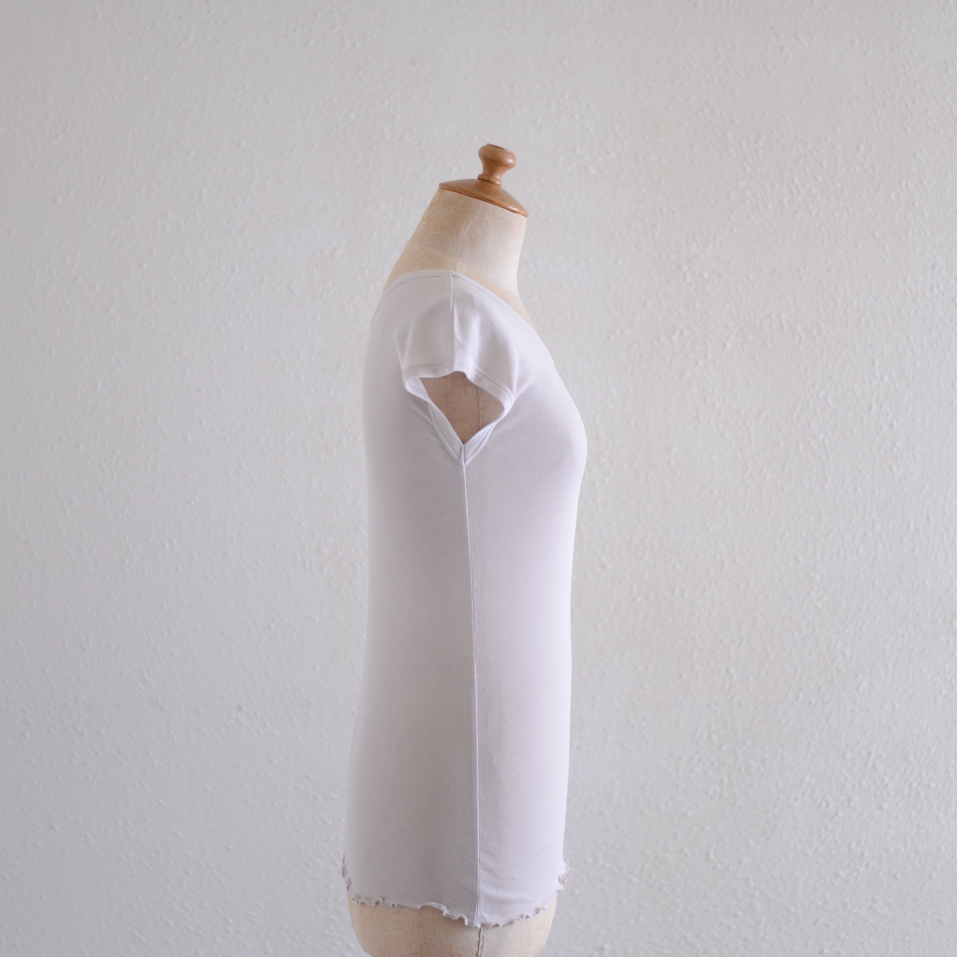 The neckline is neither too wide nor too narrow, creating a clean line that gives a glimpse of the collarbone.