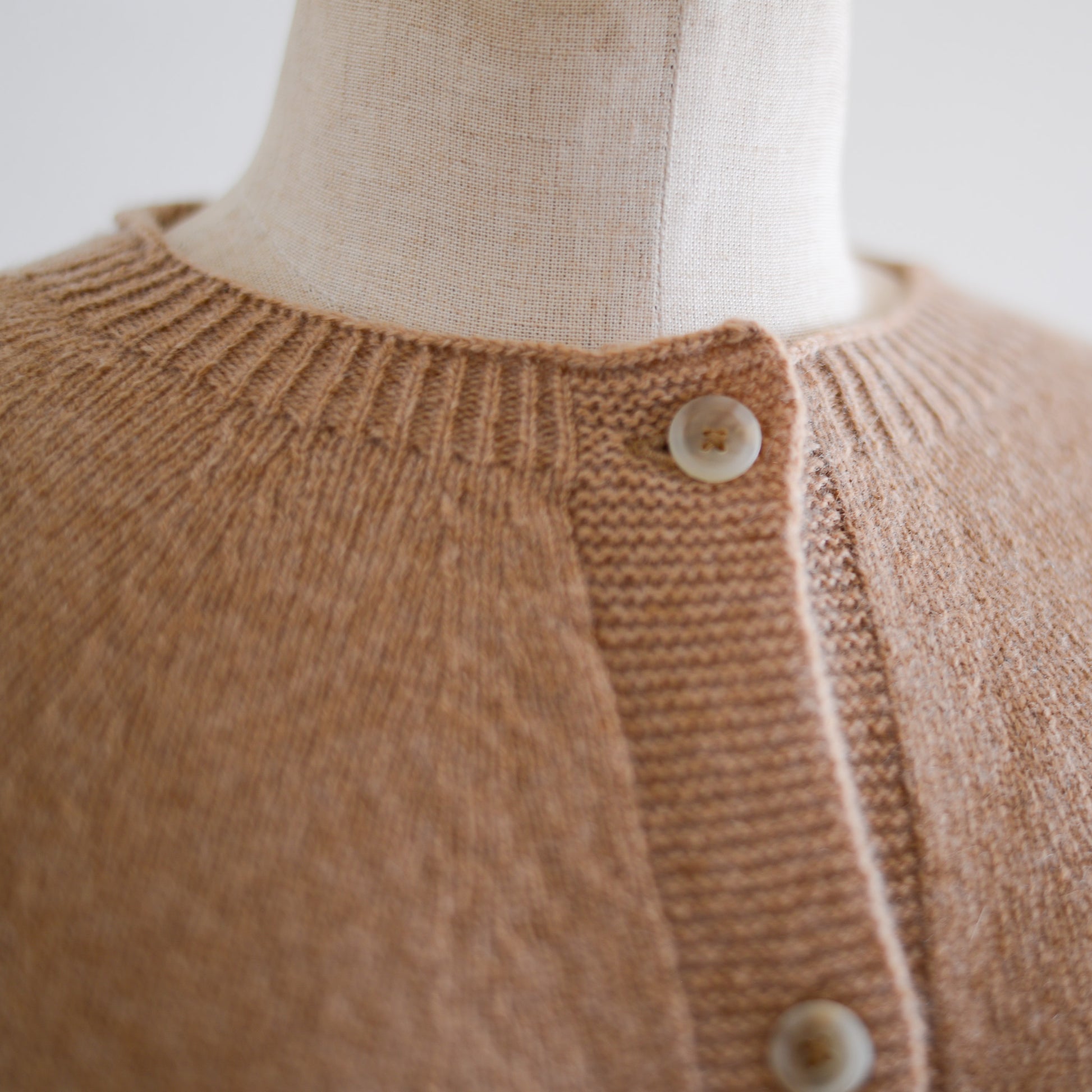 This cardigan is made from a Japanese knit material that is a luxurious blend of high-quality wool and just 10% cashmere.