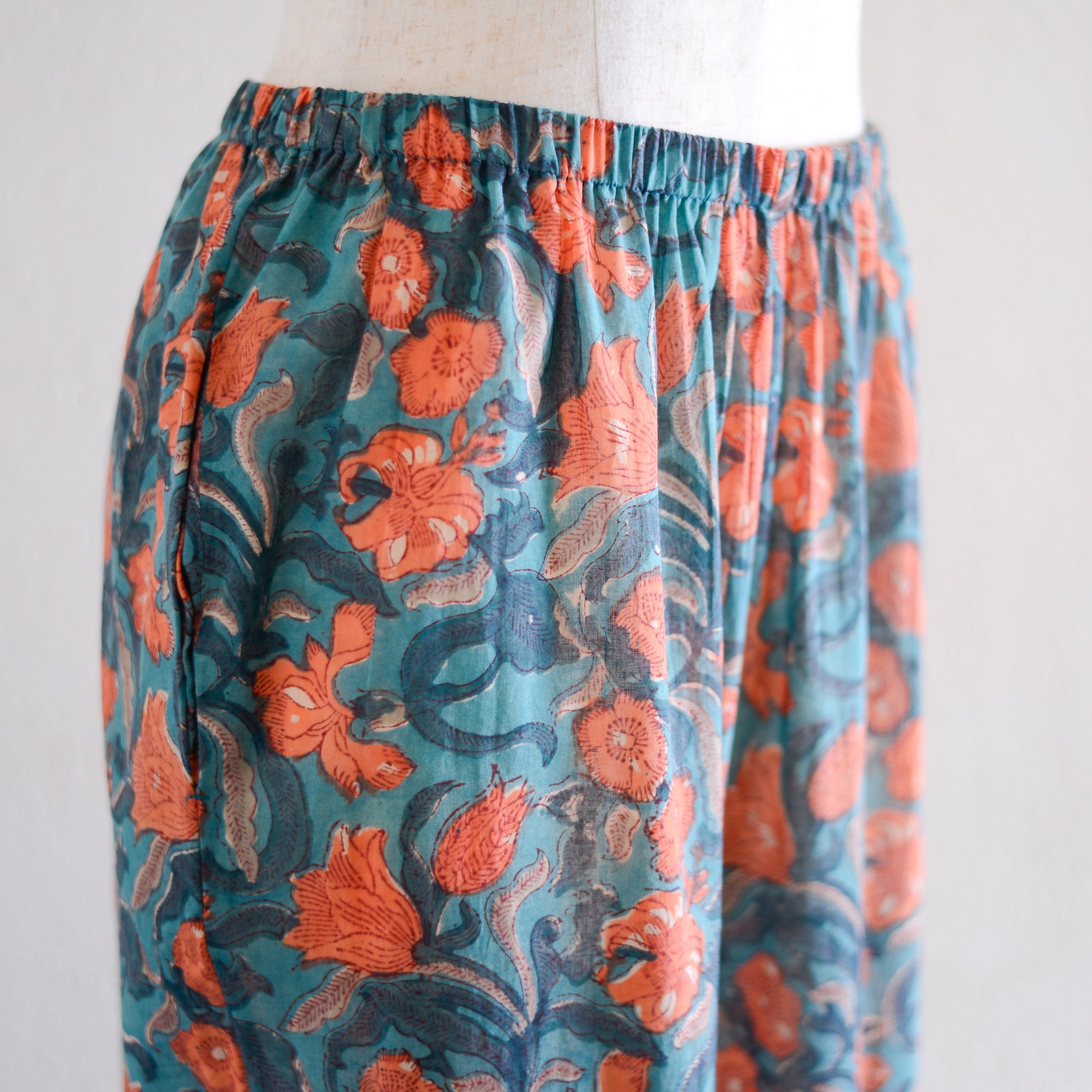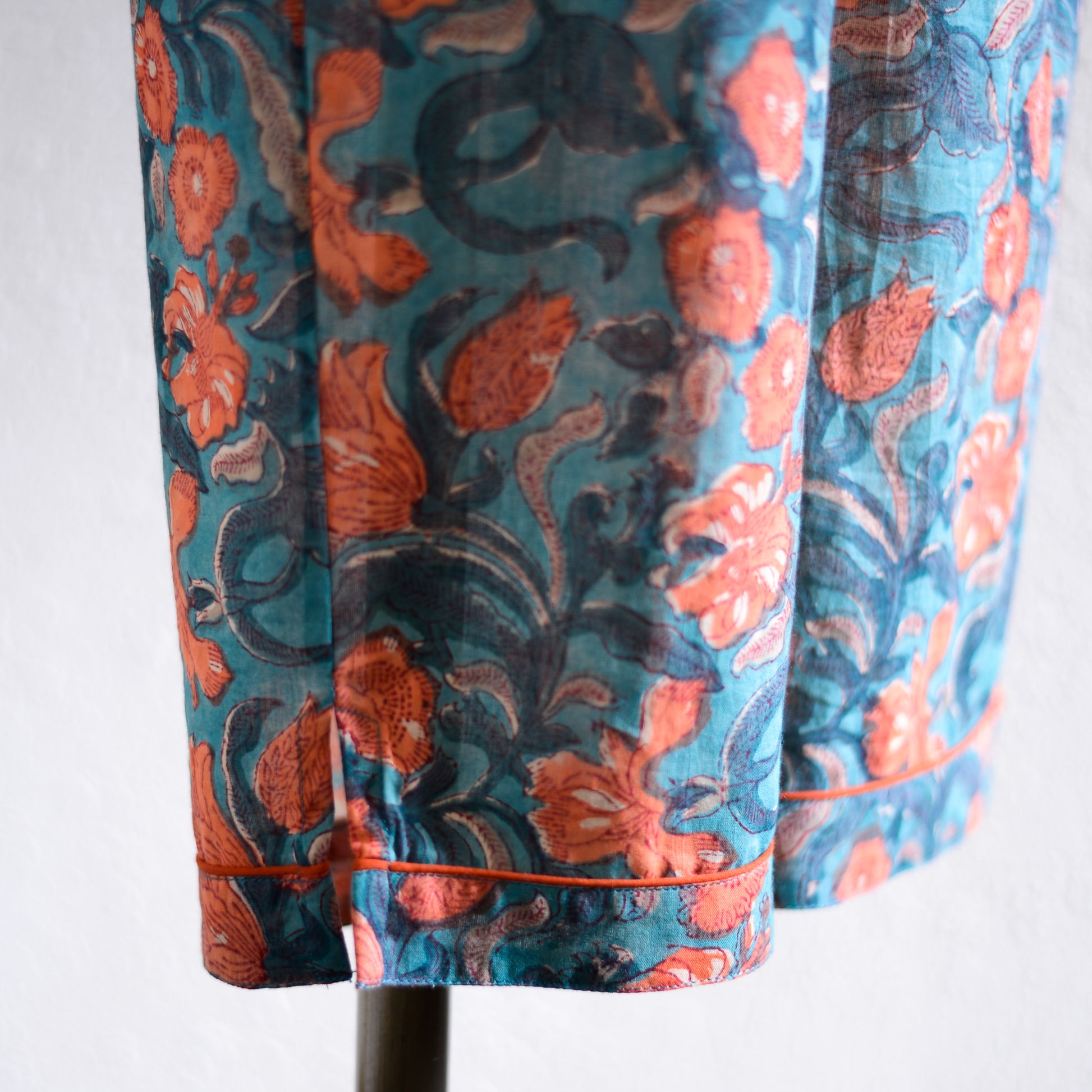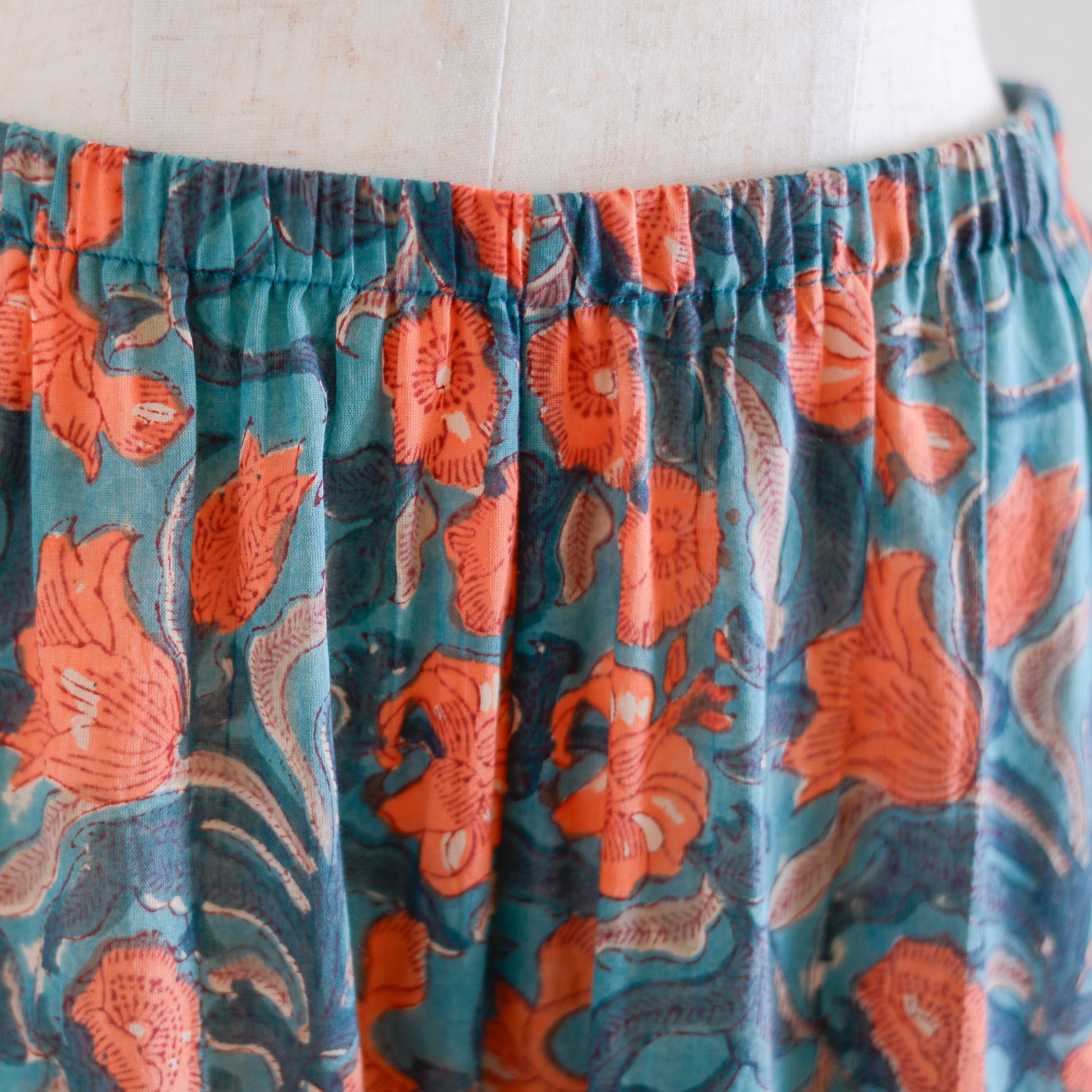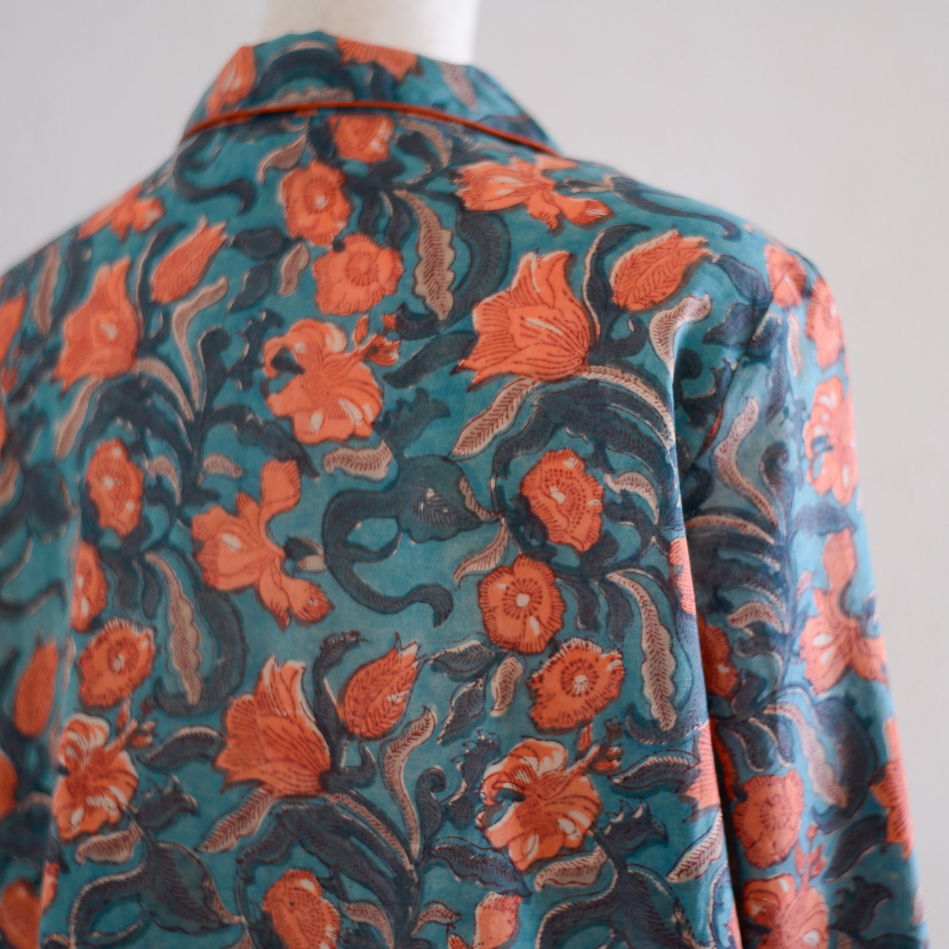 インドの伝統的な色合わせと、手押しならではの濃淡が重なり、