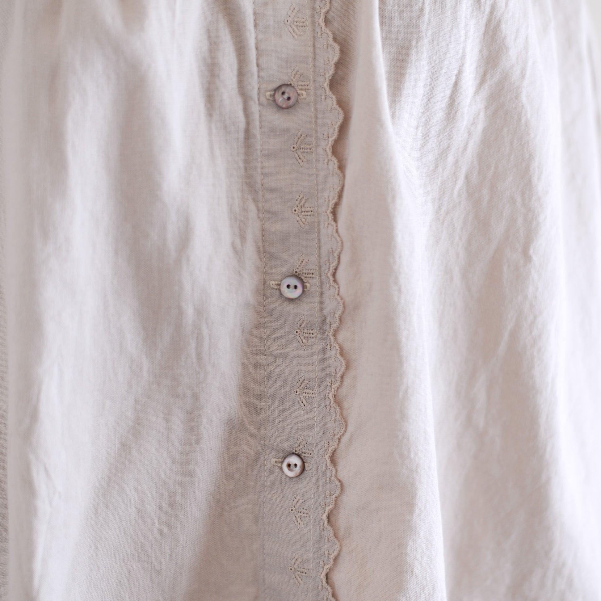 Beige Cotton Two-Way Embroidery Blouse