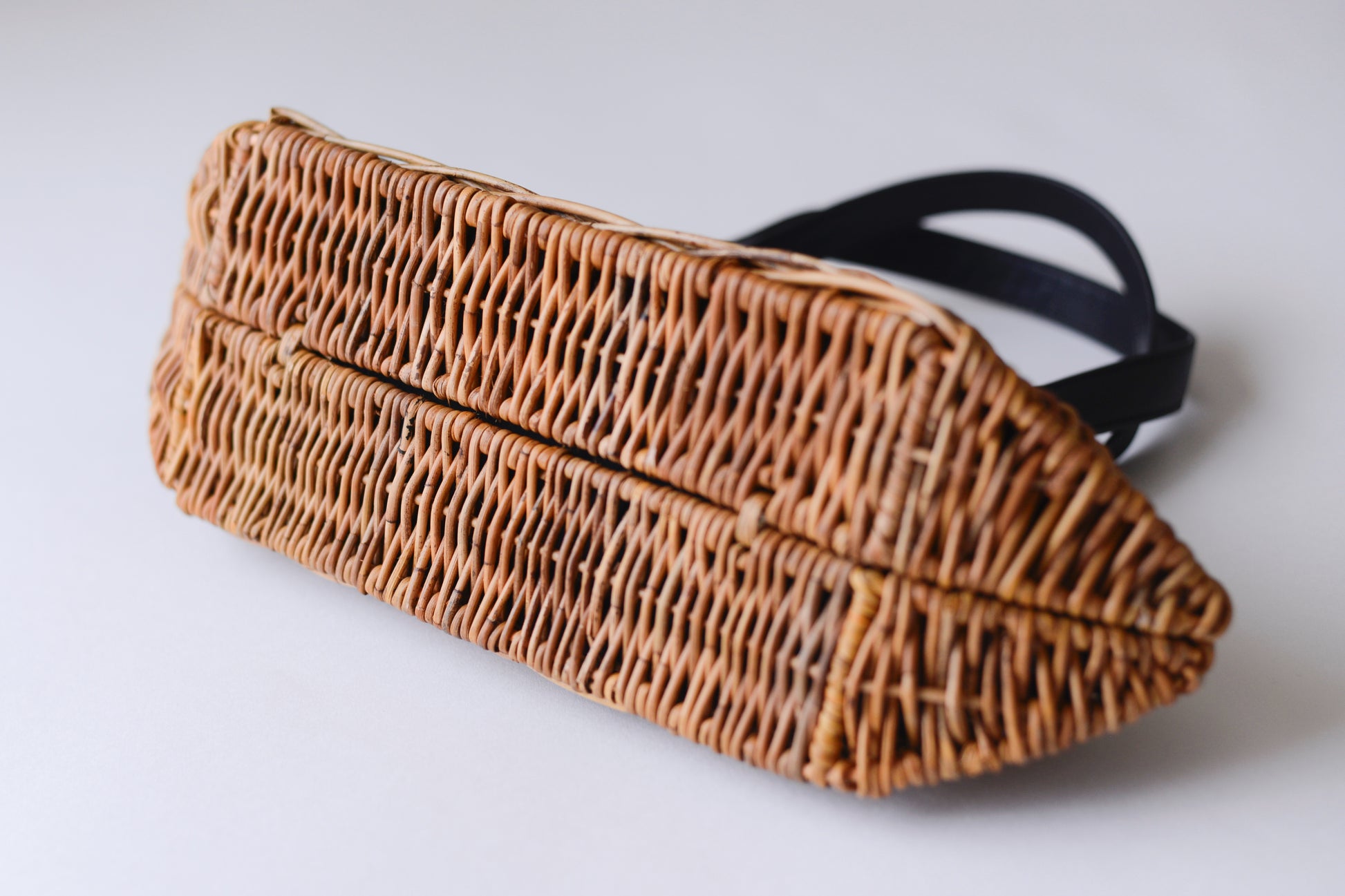 横長のフォルムが目を引く、スタイリッシュなかごバッグ。