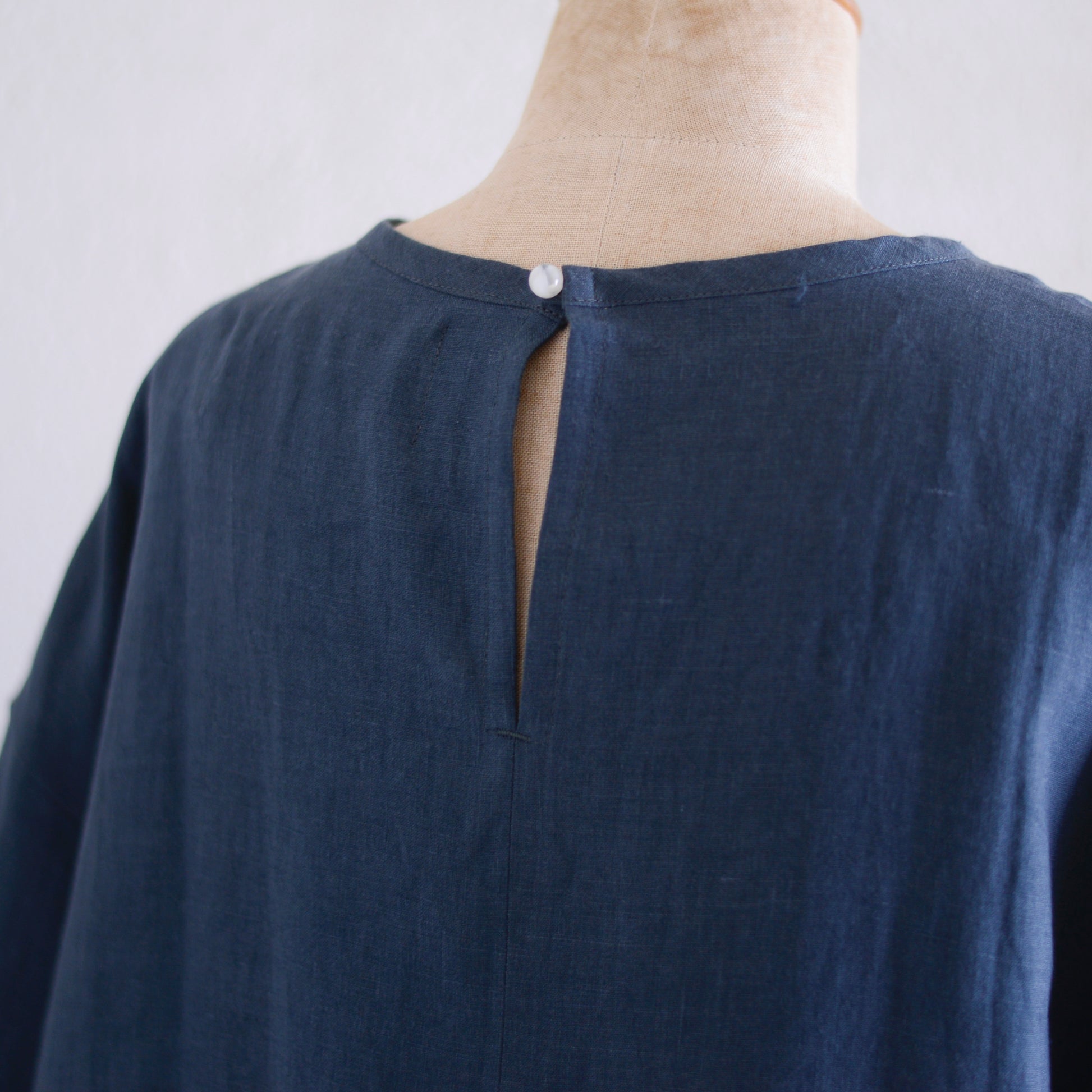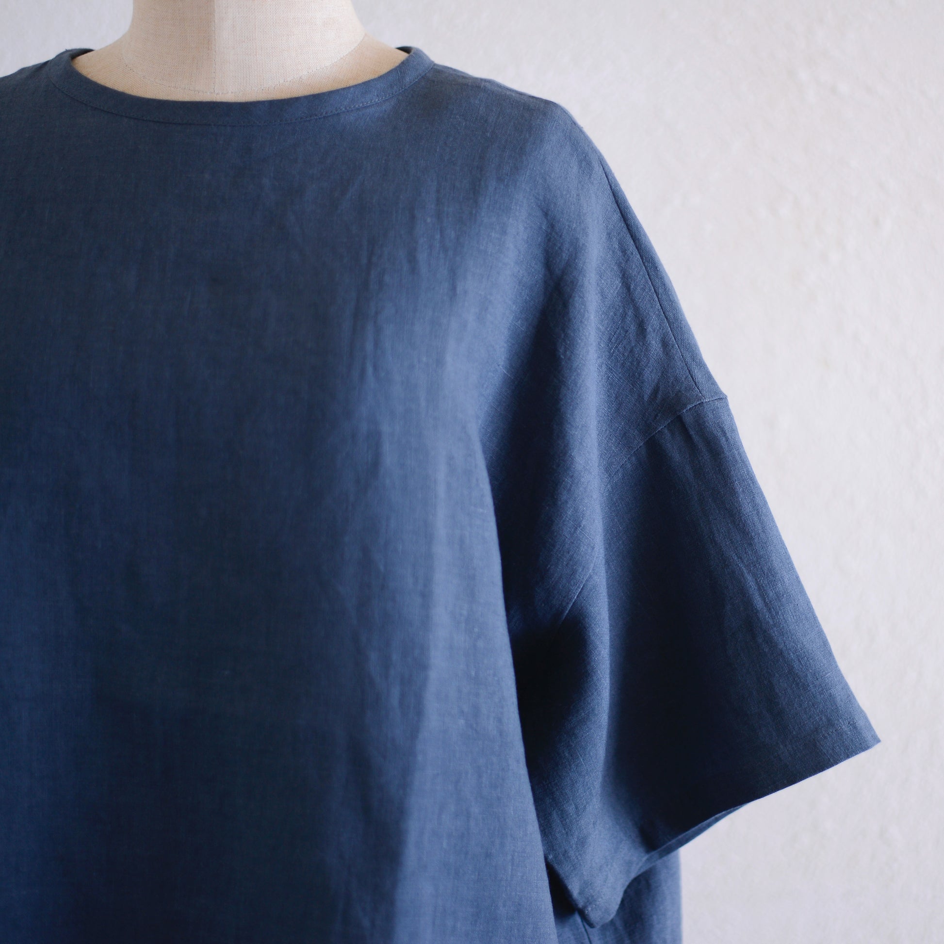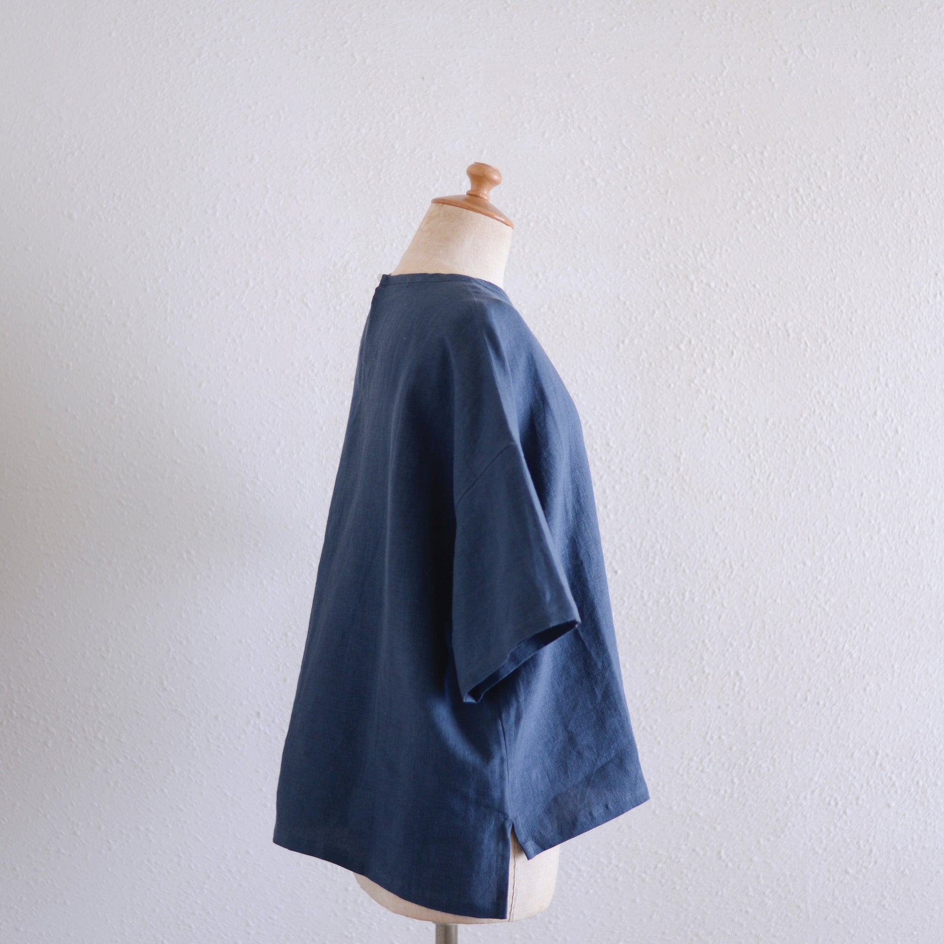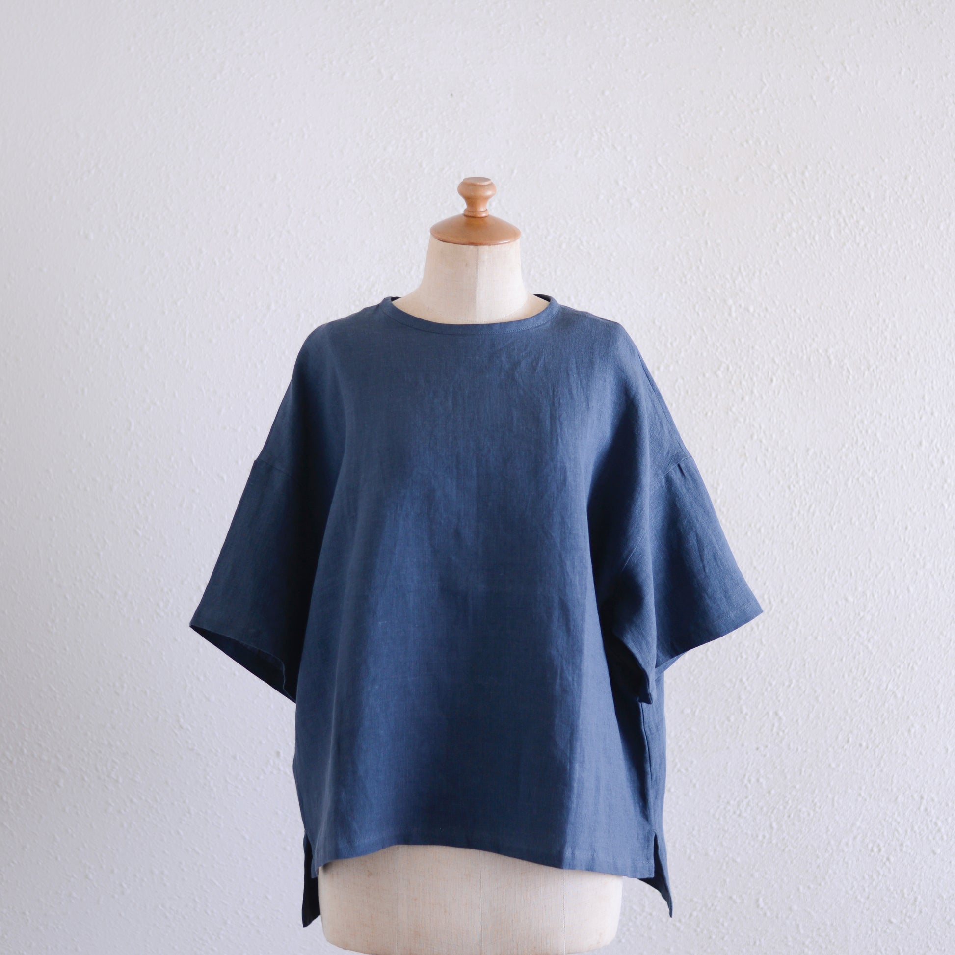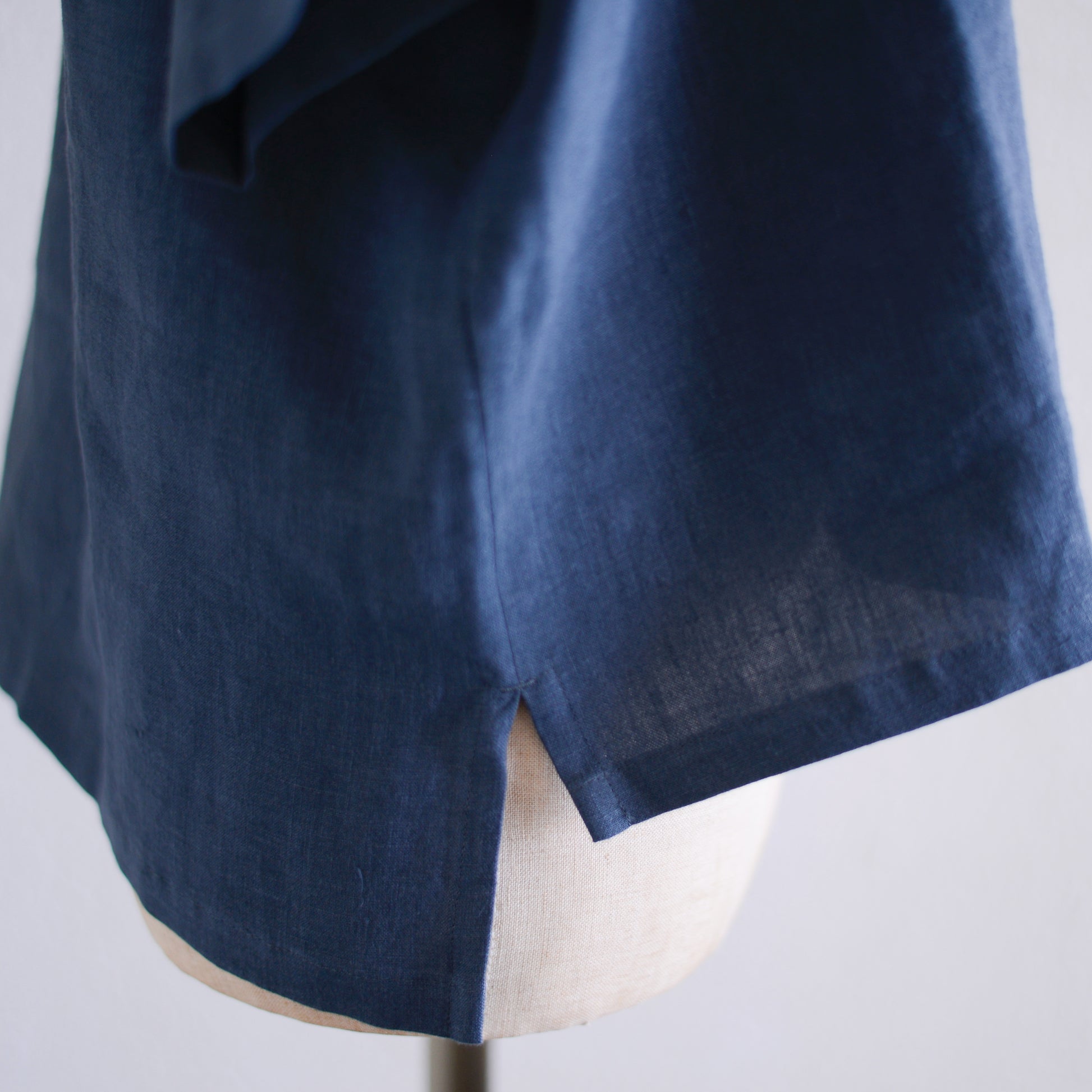 淡いサックスは風を含んだように軽やかで、リネンコットンデニムワイドパンツIndigoなどと合わせれば日差しの下でもぴったりの爽やかさ。