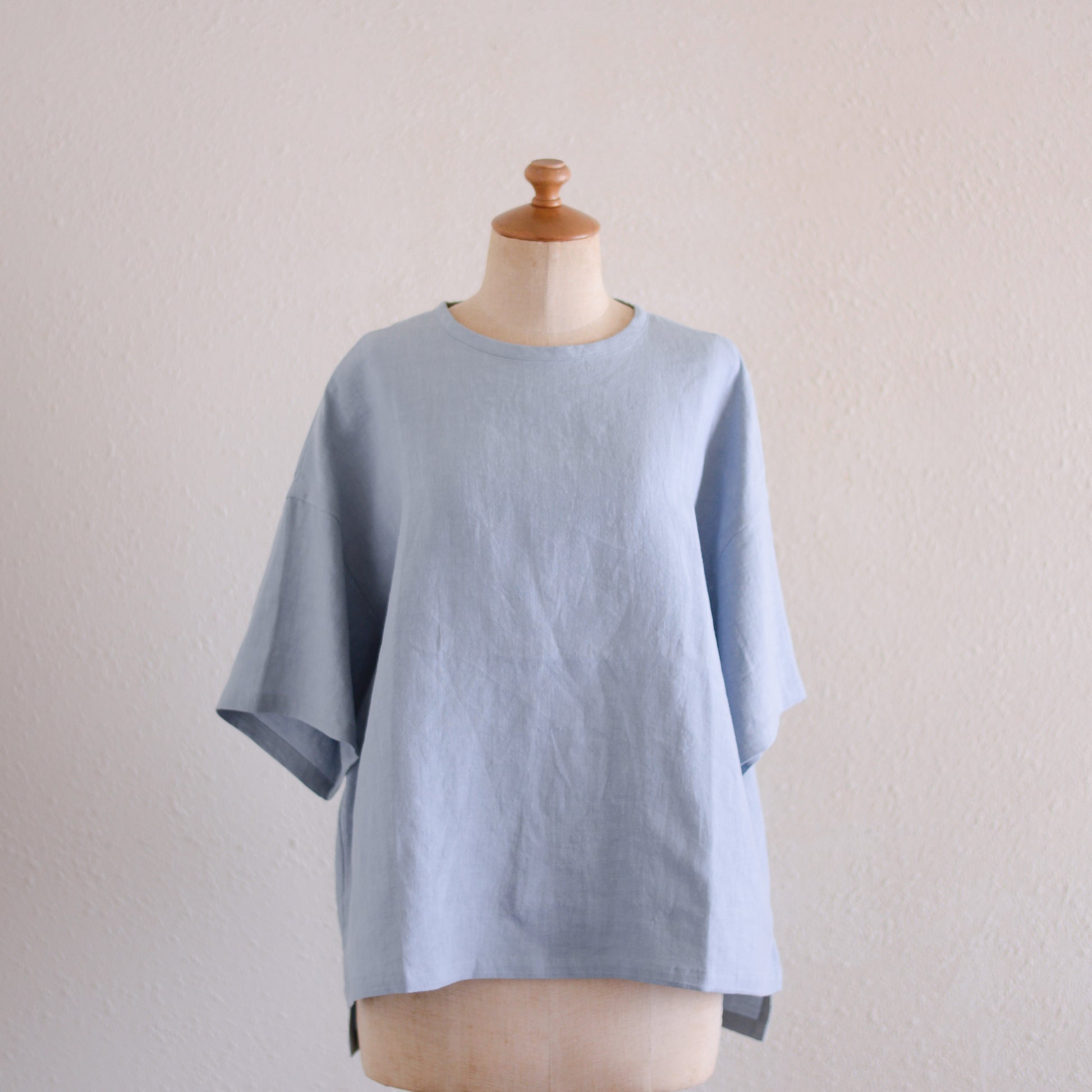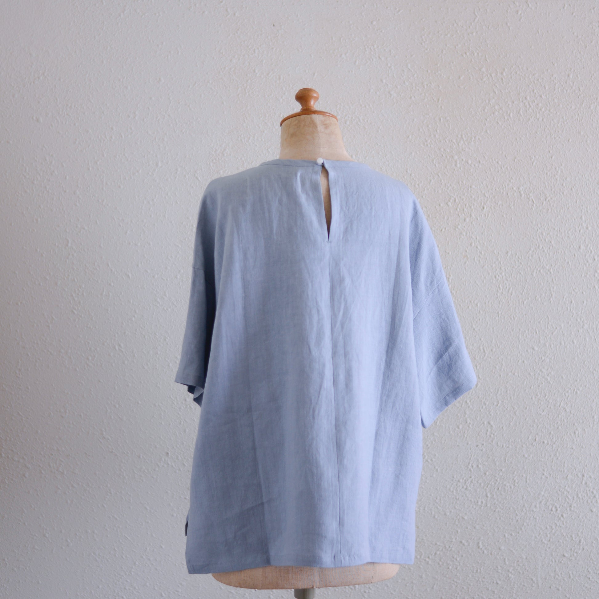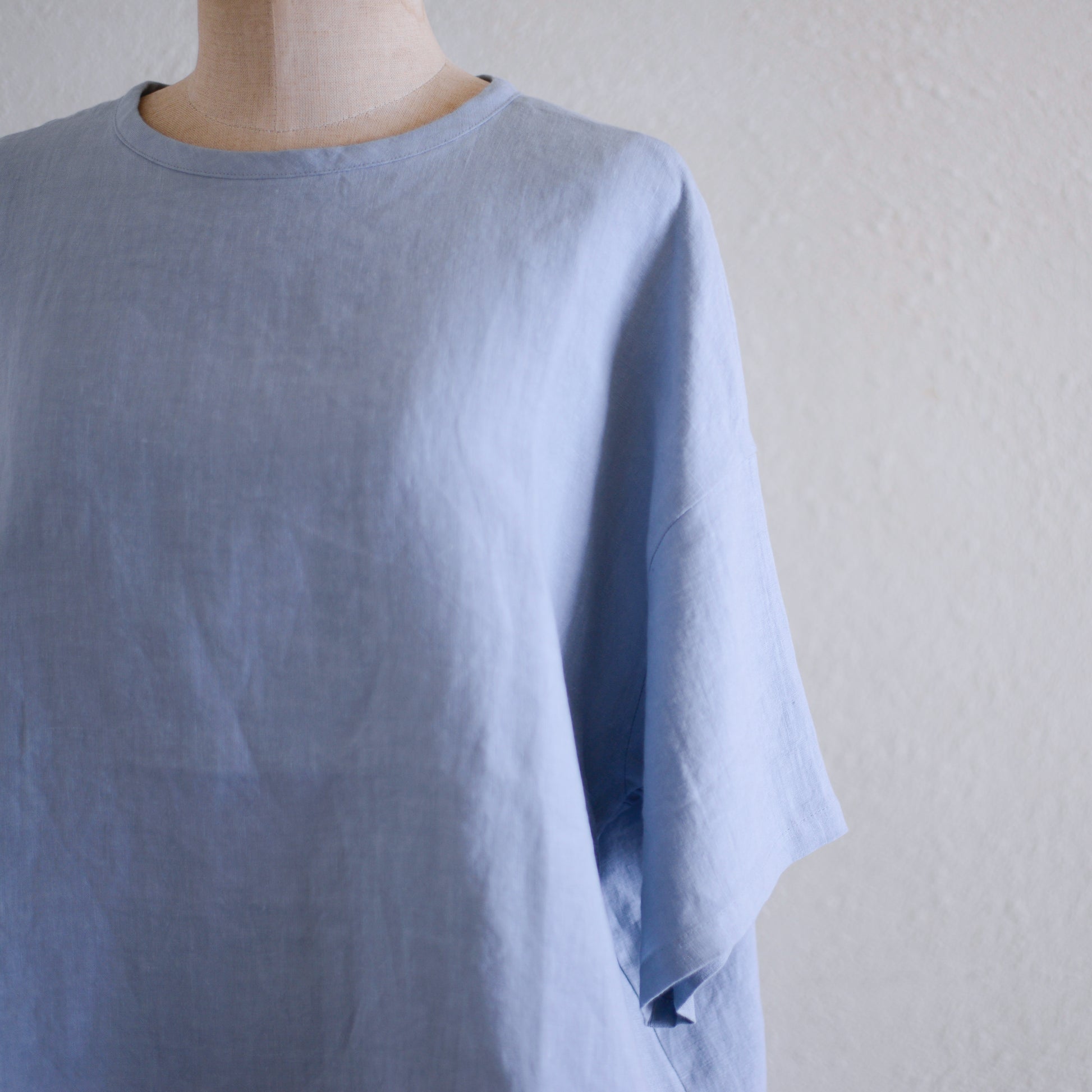 淡いサックスは風を含んだように軽やかで、リネンコットンデニムワイドパンツIndigoなどと合わせれば日差しの下でもぴったりの爽やかさ。