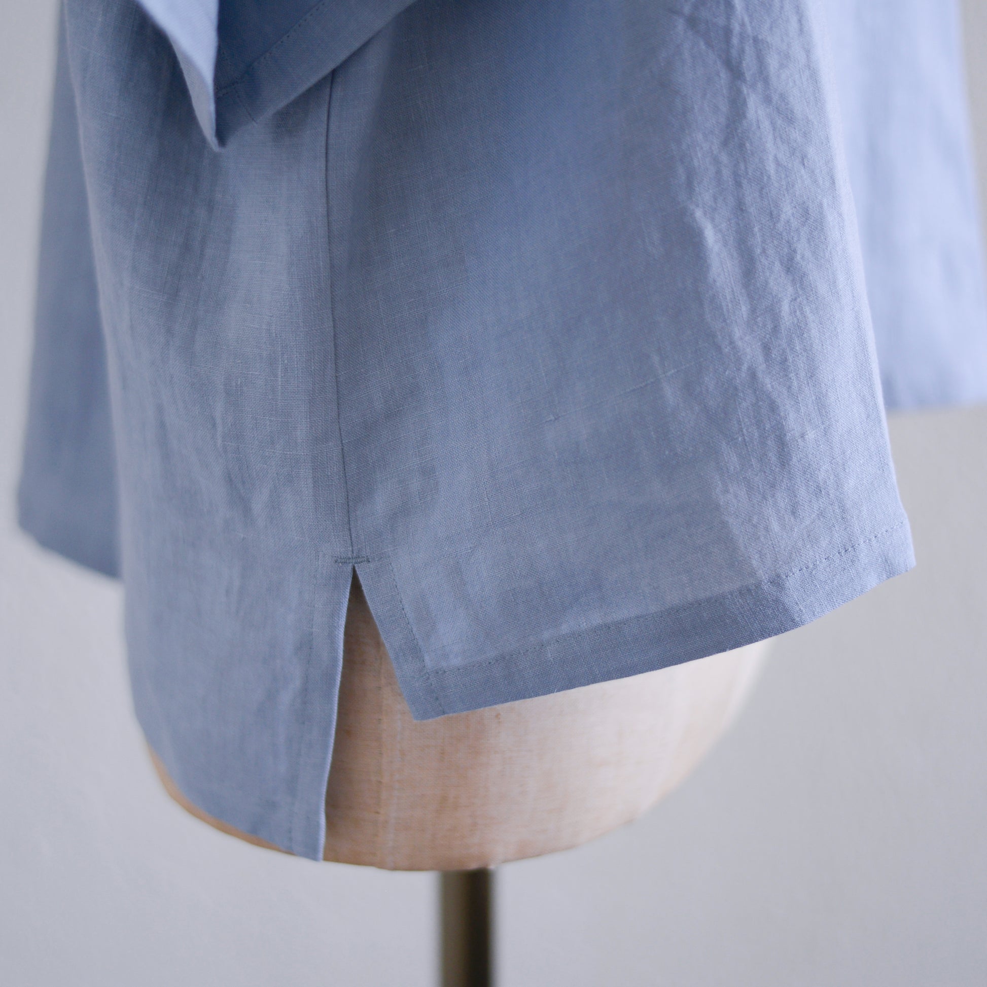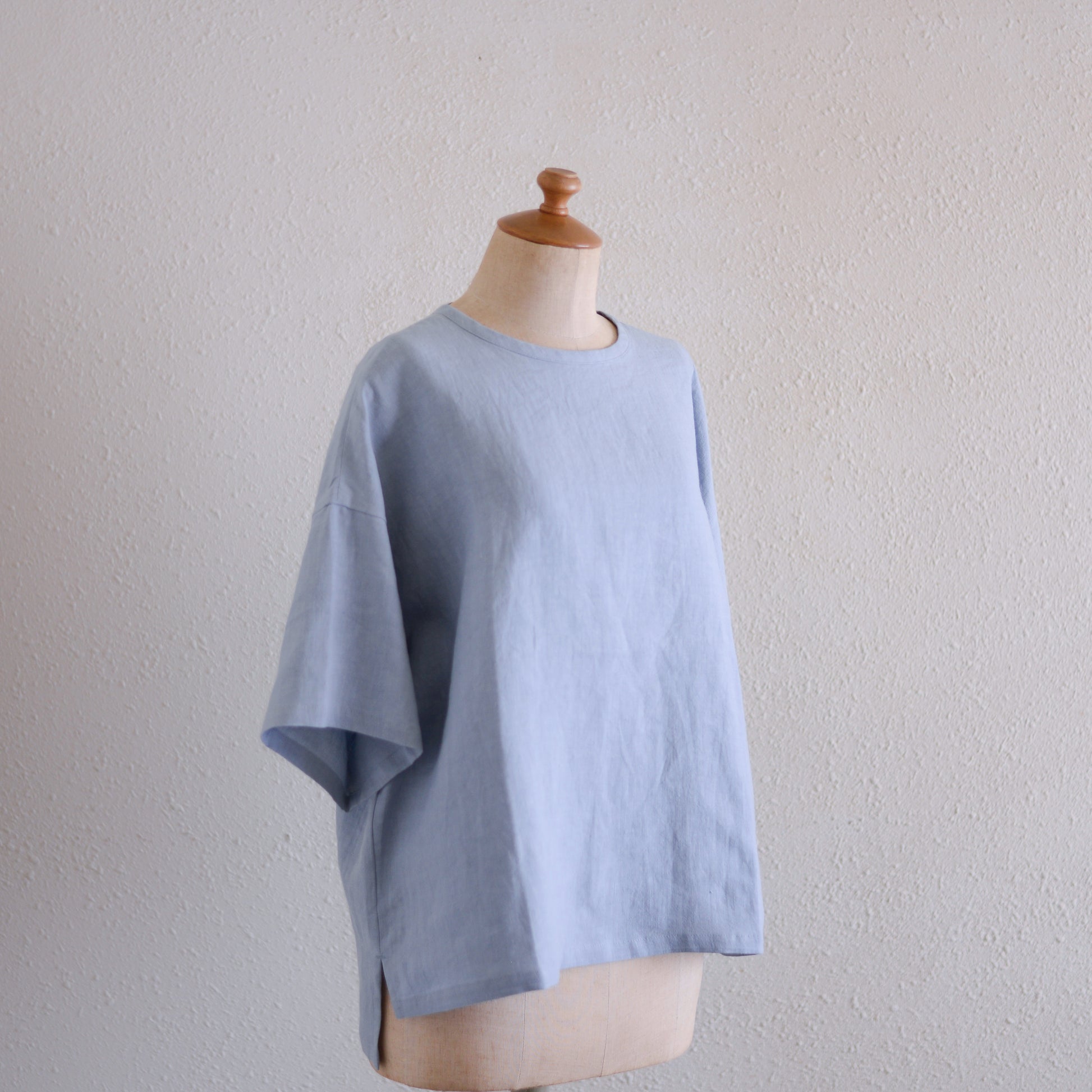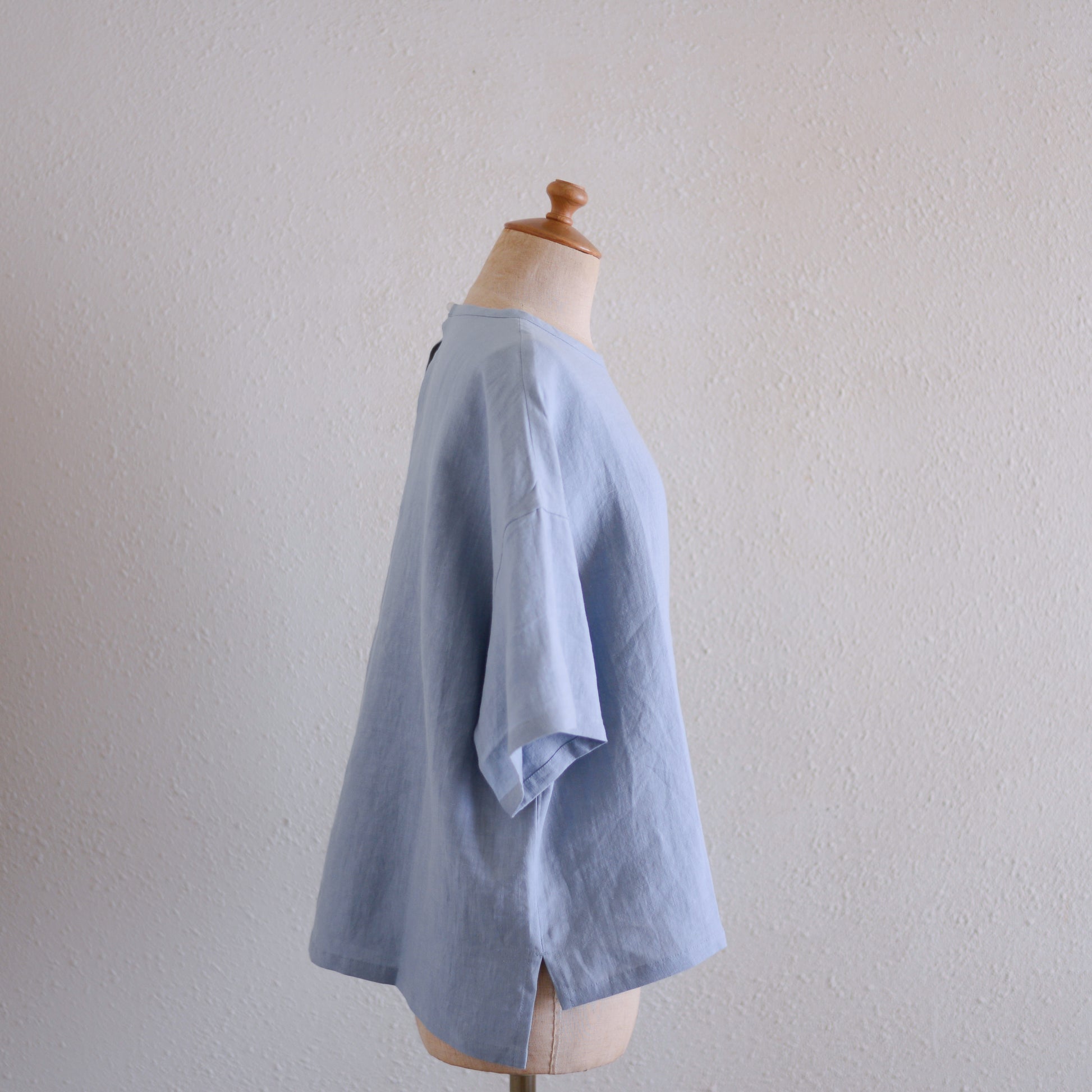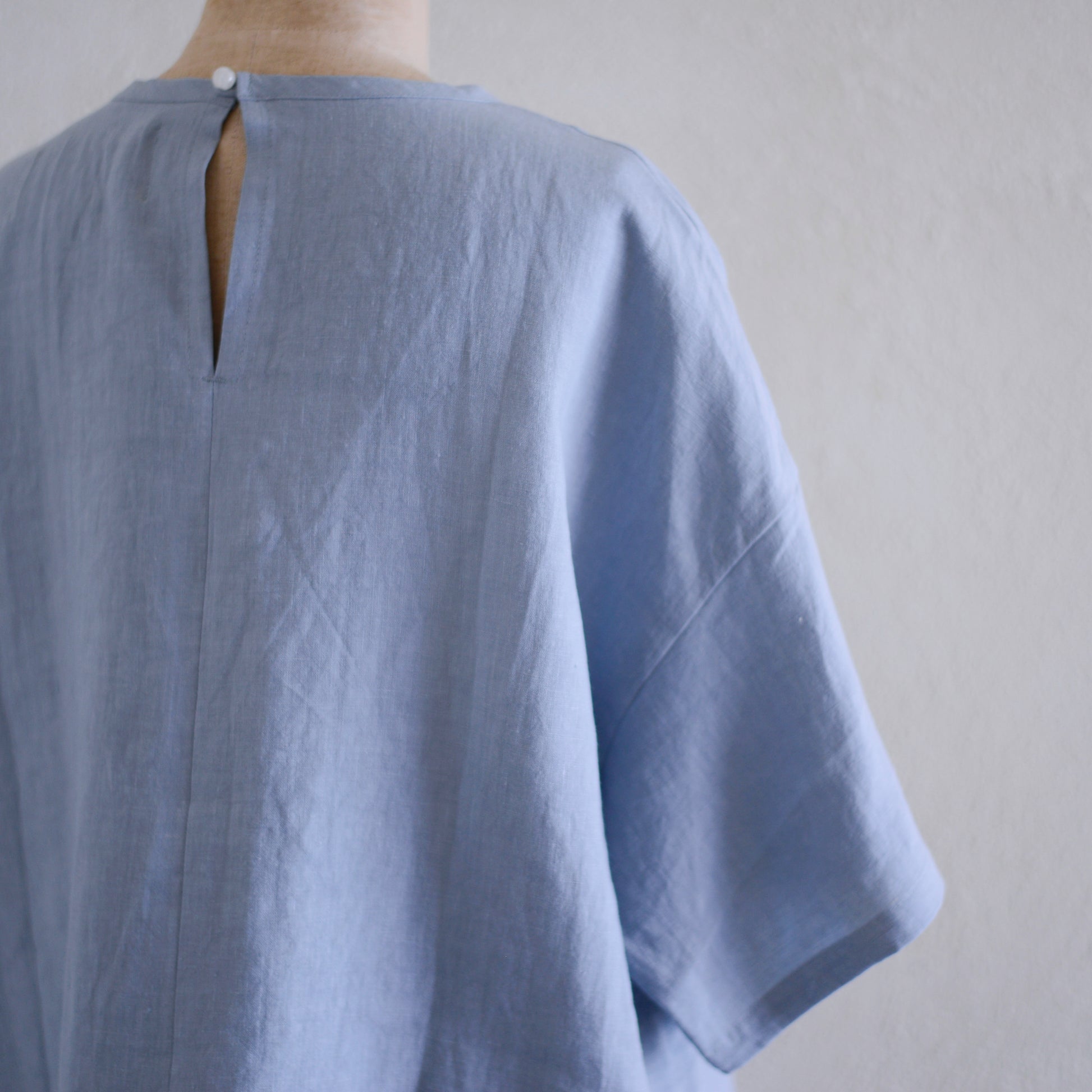 淡いサックスは風を含んだように軽やかで、リネンコットンデニムワイドパンツIndigoなどと合わせれば日差しの下でもぴったりの爽やかさ。