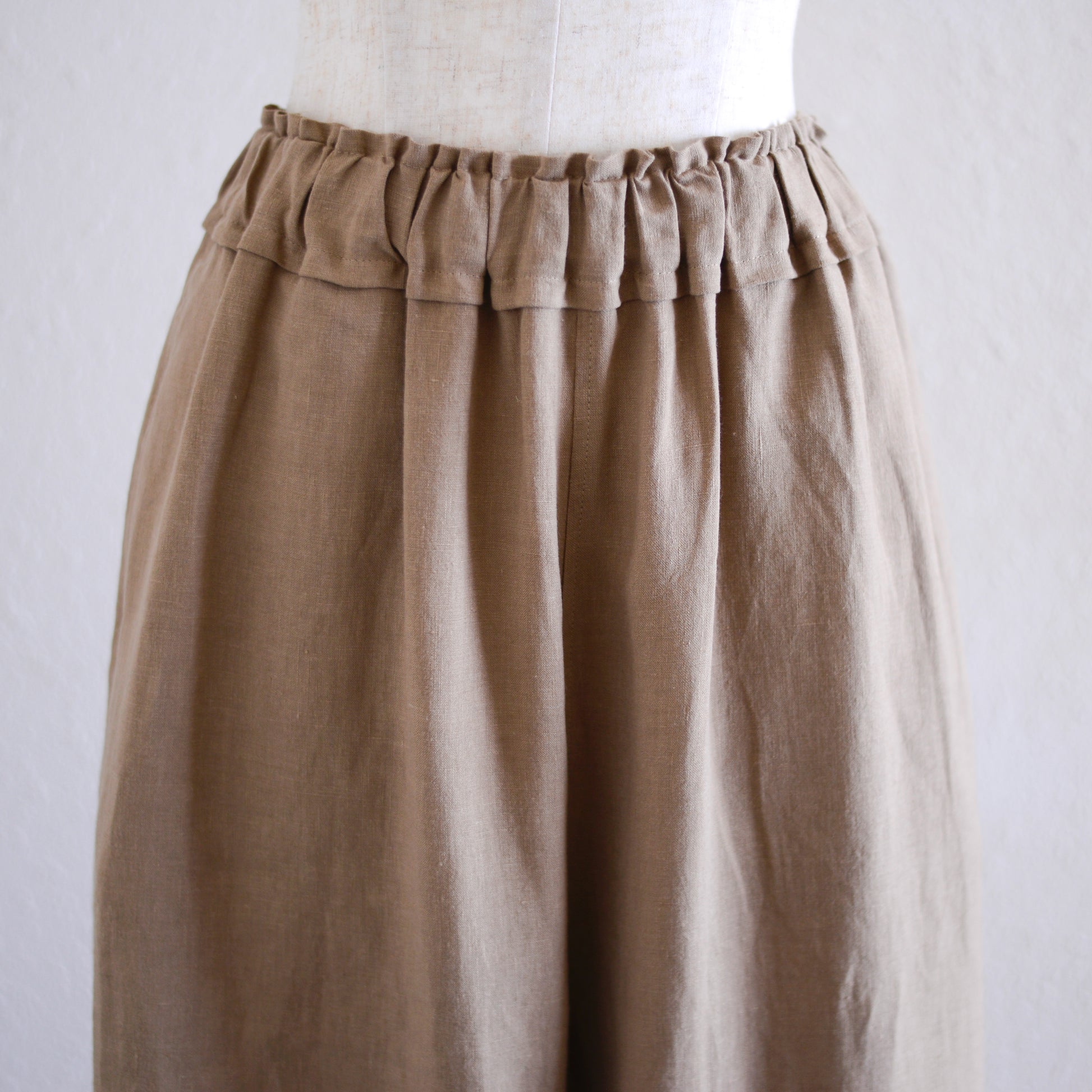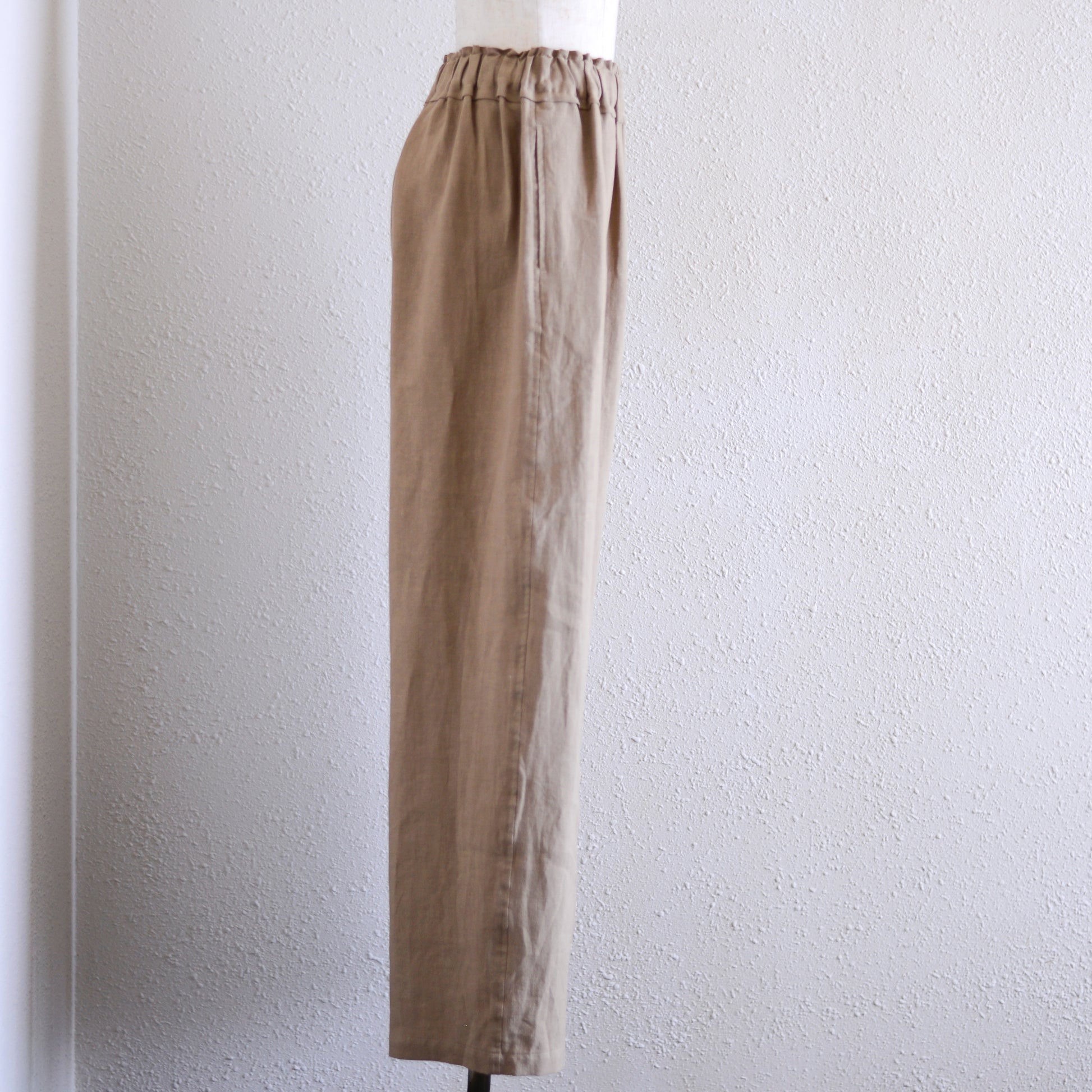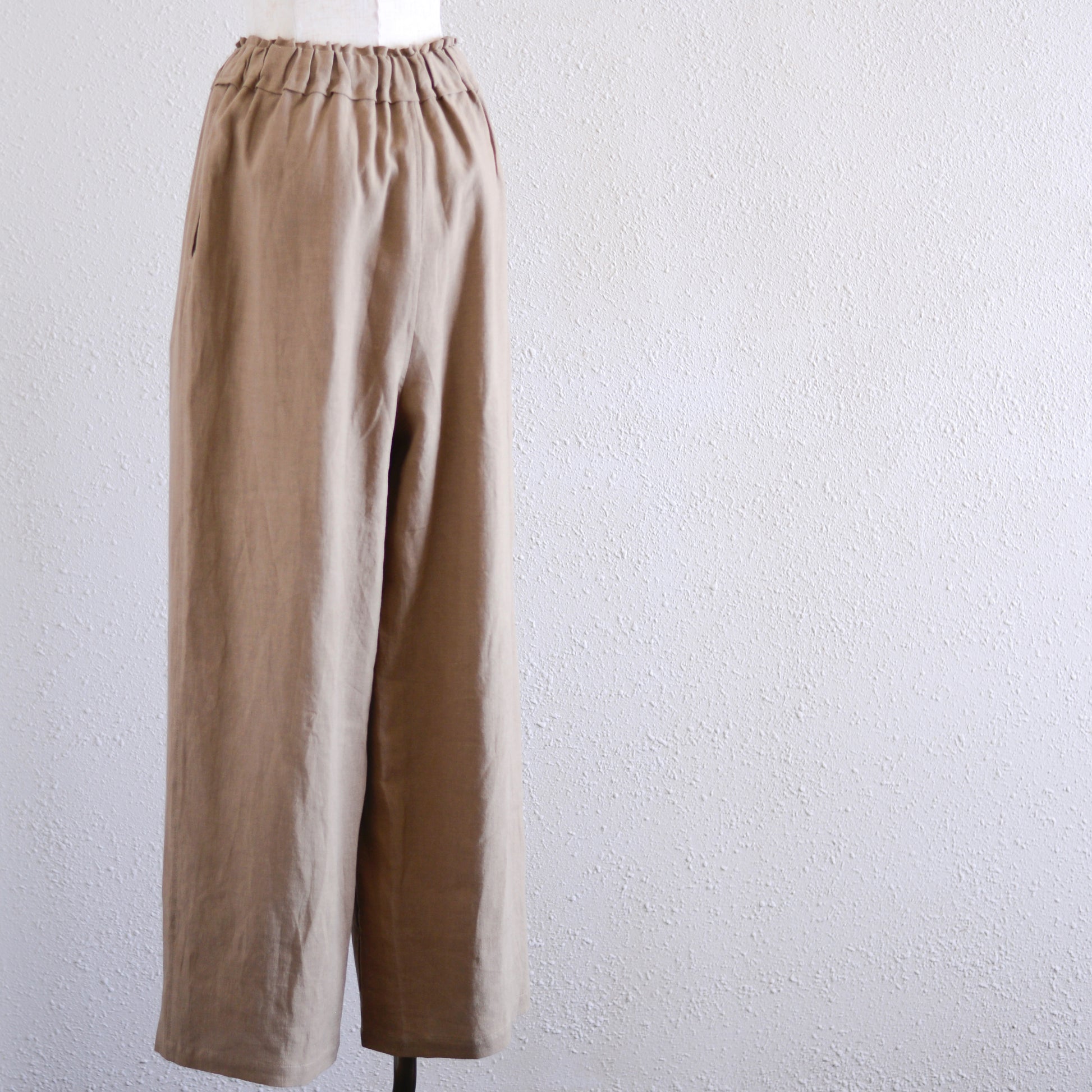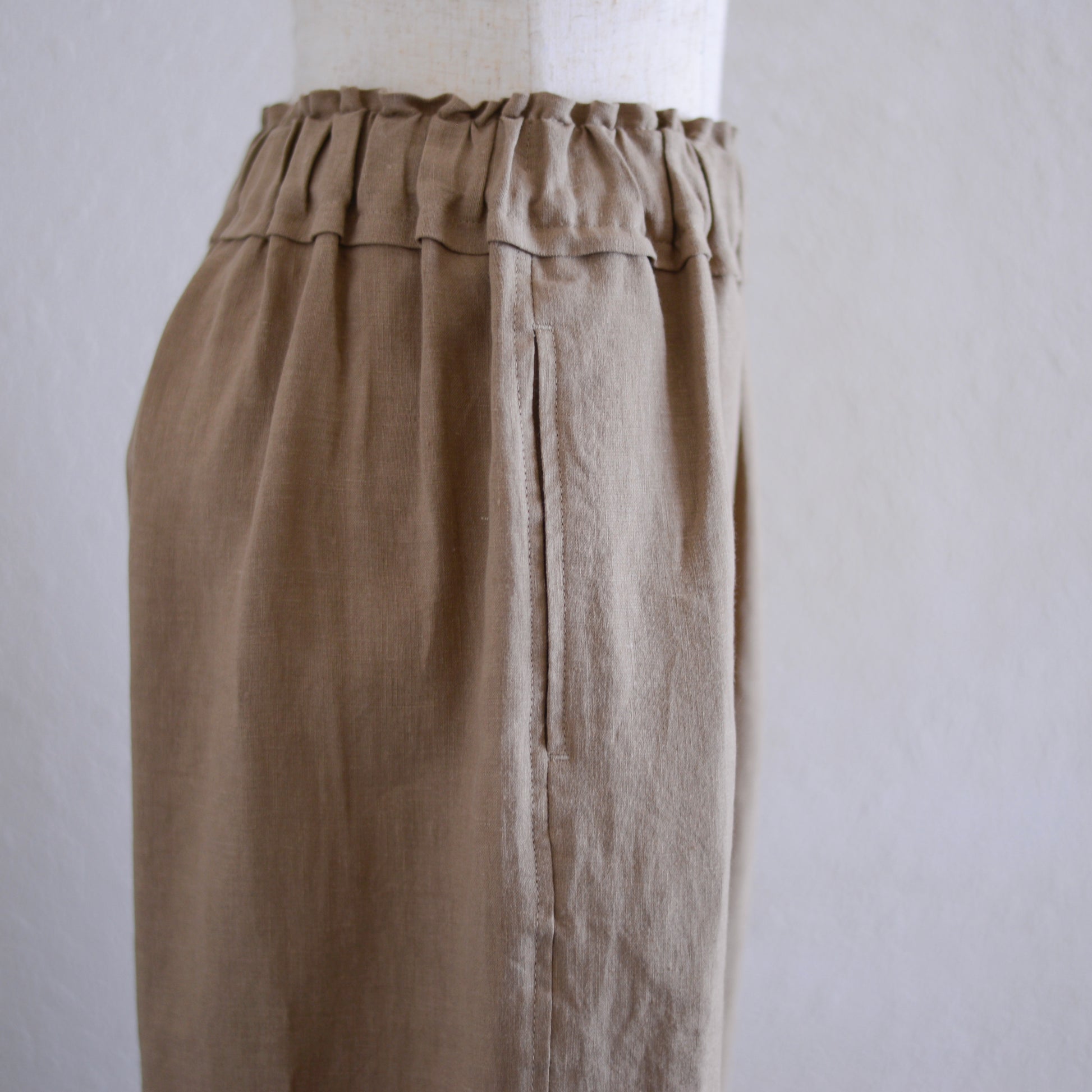 同生地のリネンボックスプルオーバーと合わせれば、素材の風合いが引き立つシックなセットアップに。