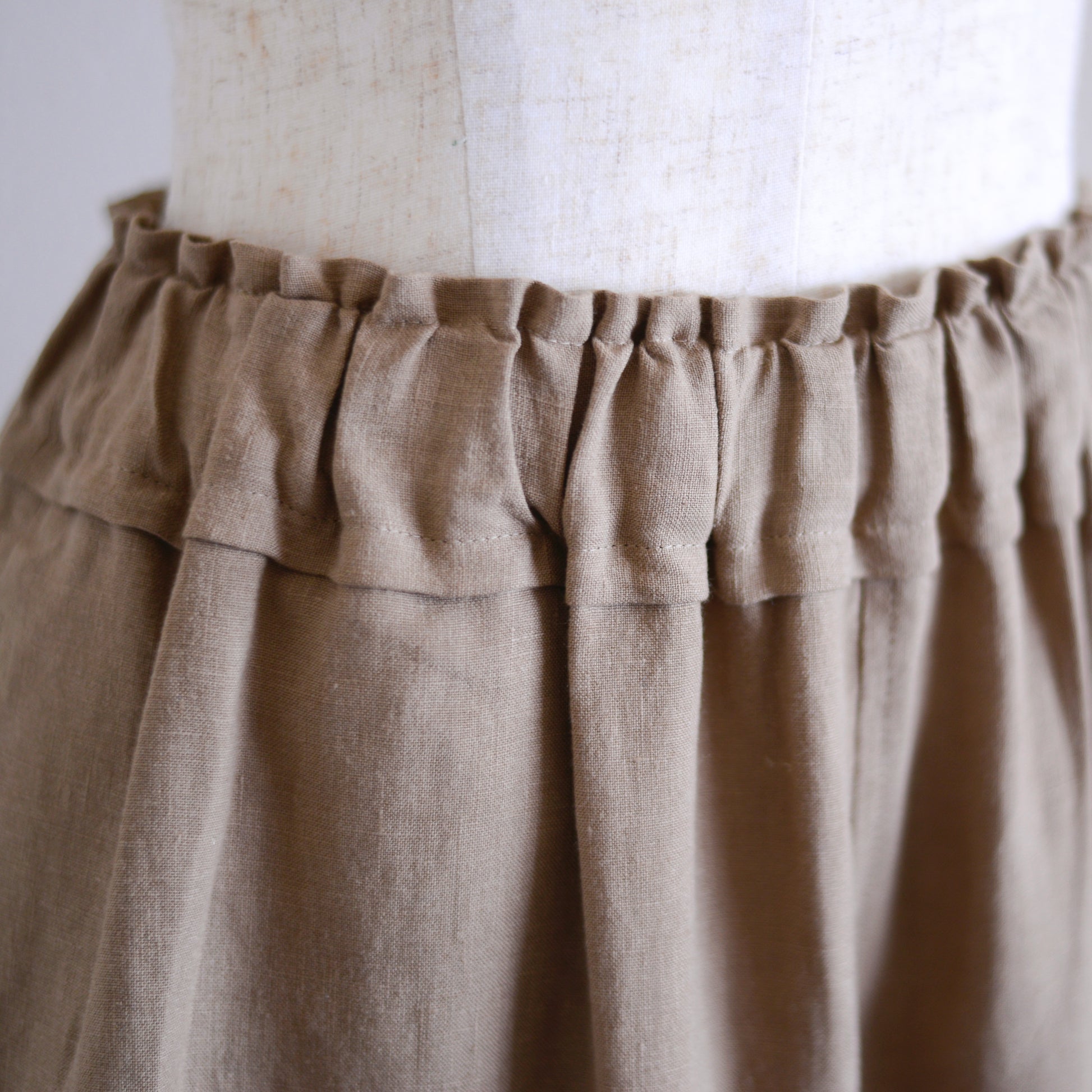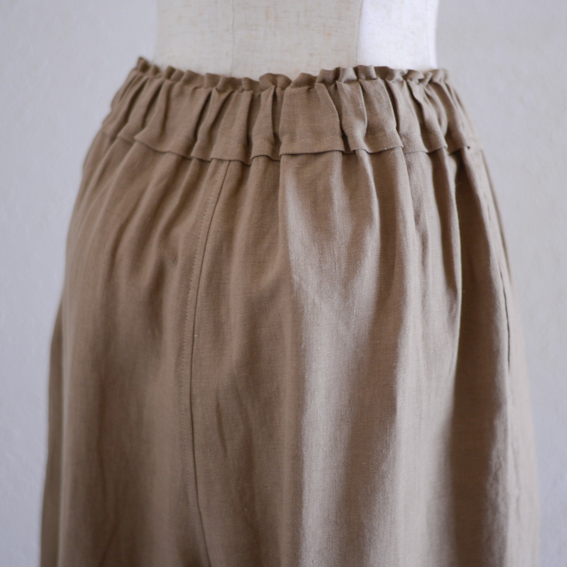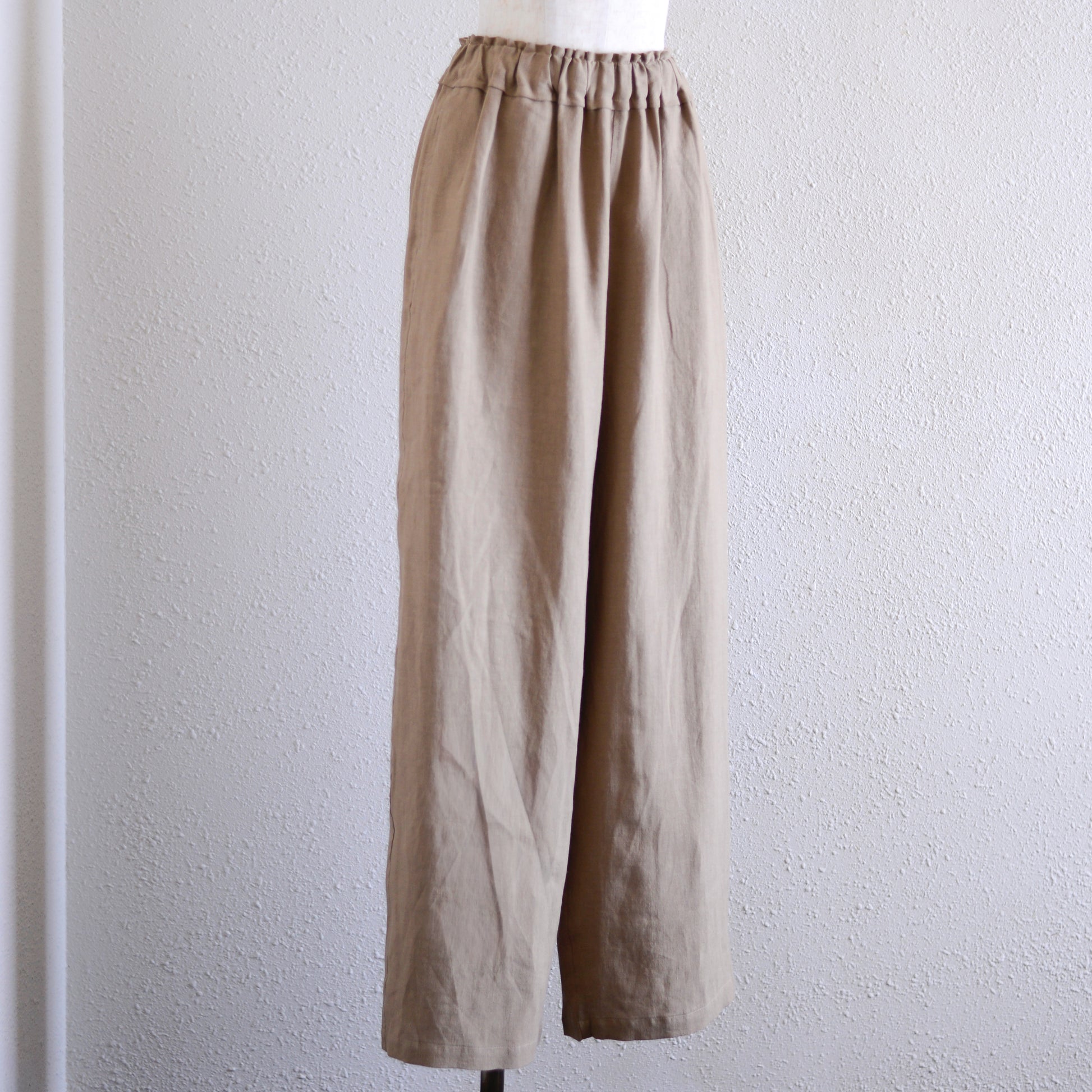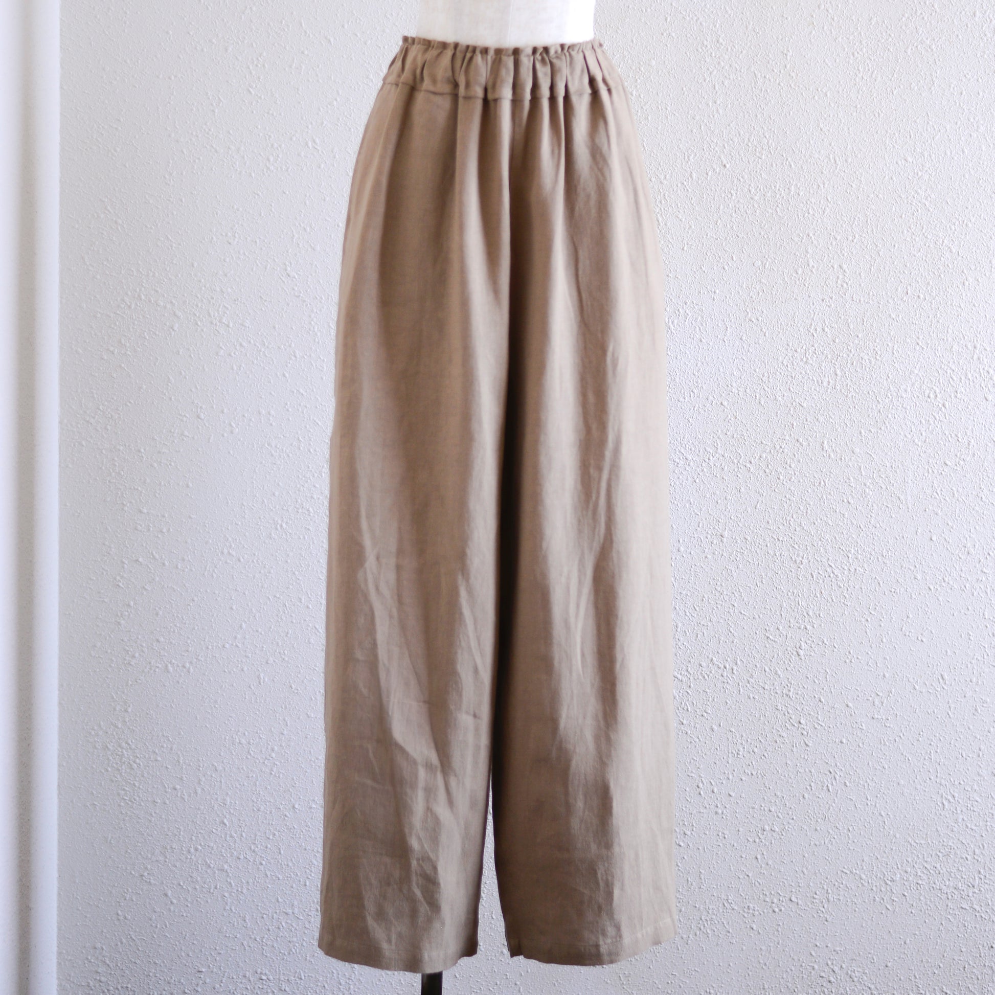 同生地のリネンボックスプルオーバーと合わせれば、素材の風合いが引き立つシックなセットアップに。