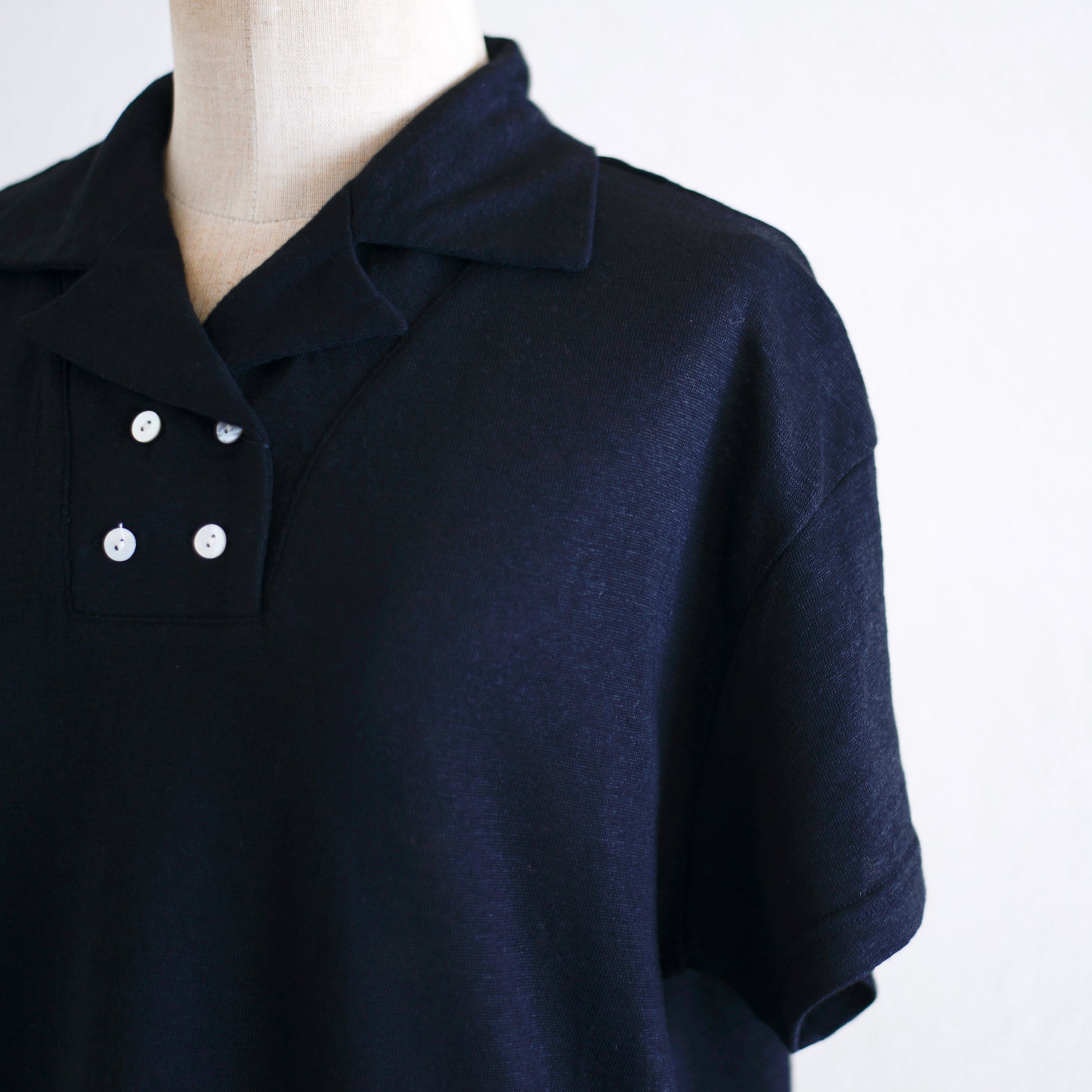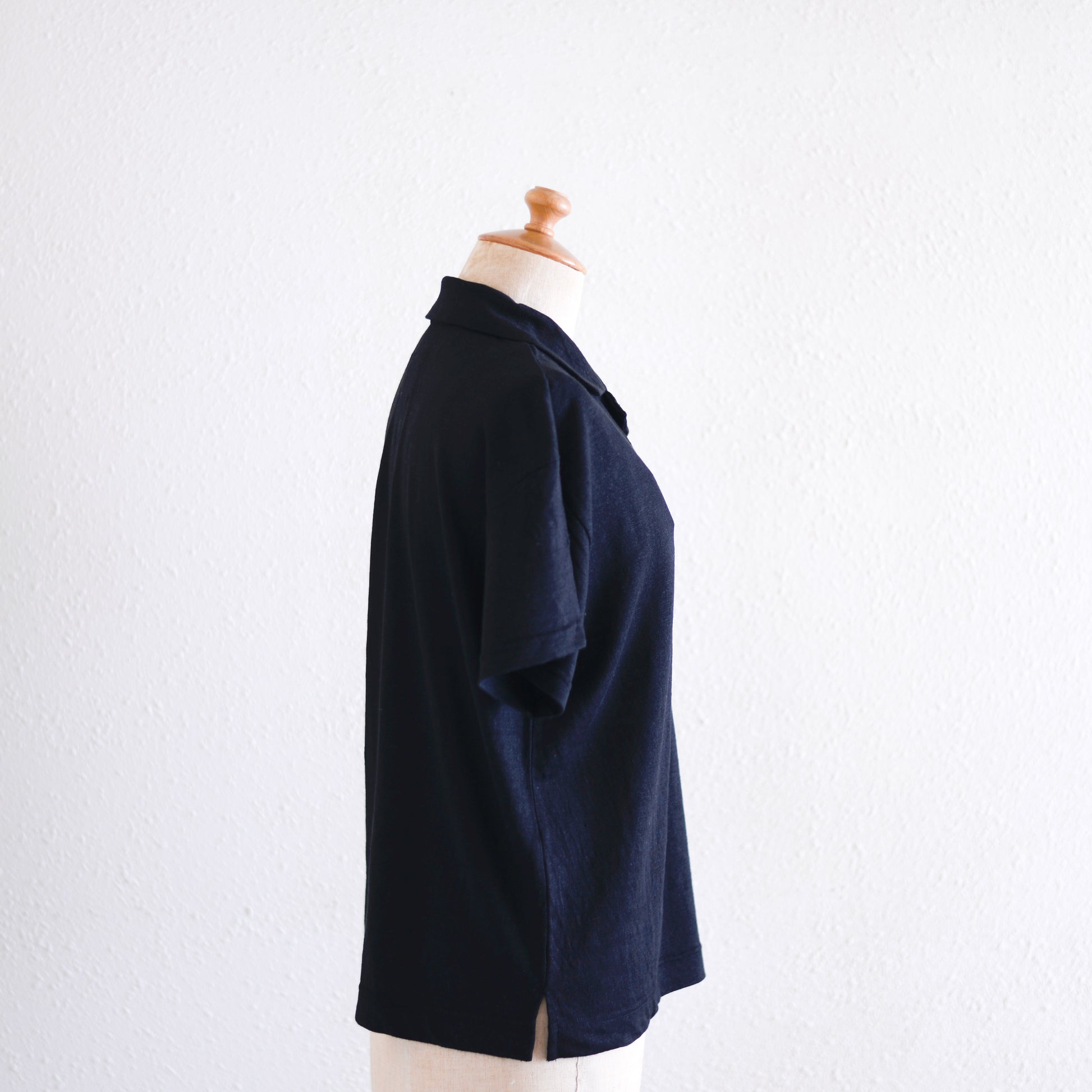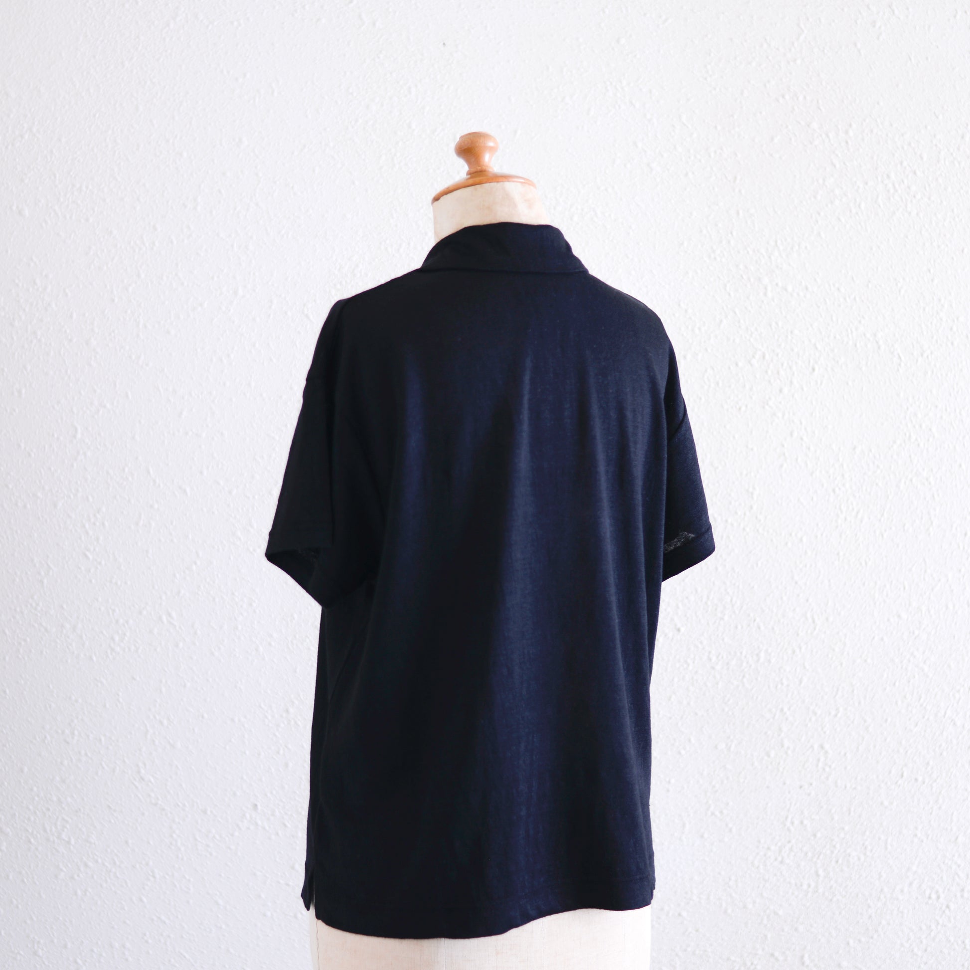 リネンジャージオープンカラープルオーバー Black