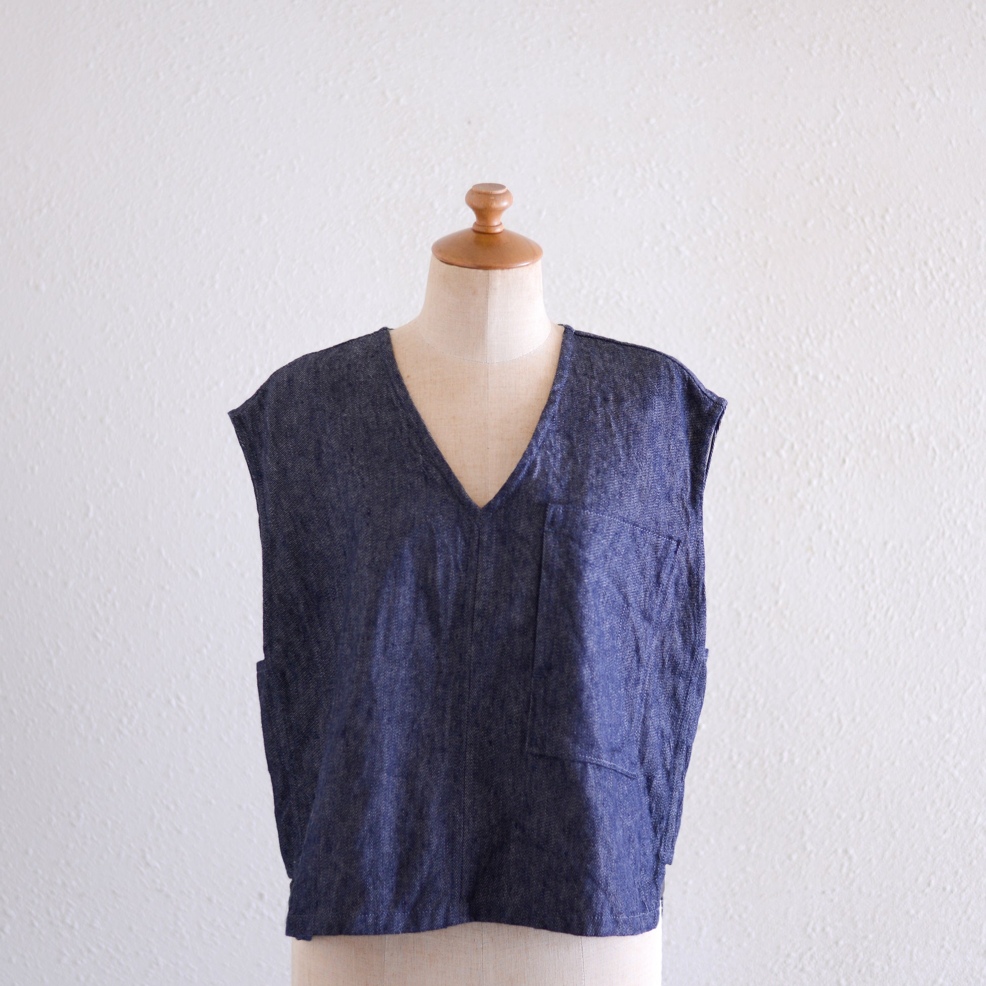 ナチュラルオフホワイトインディゴと、同じデザインでも、色が変わるだけで纏う空気が異なるのもこのベストのポイント