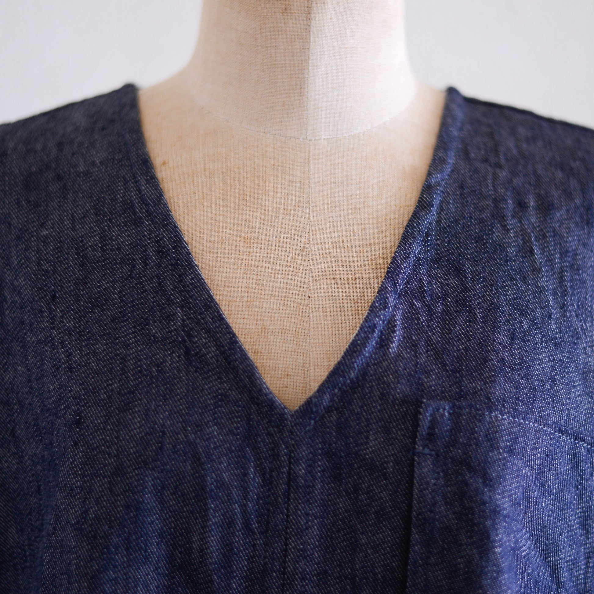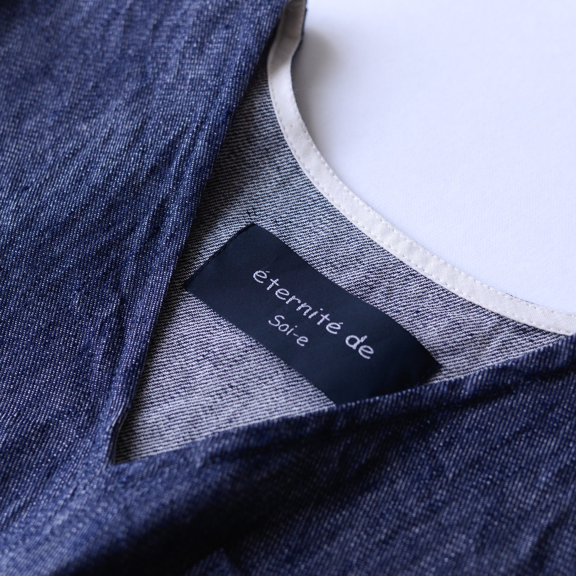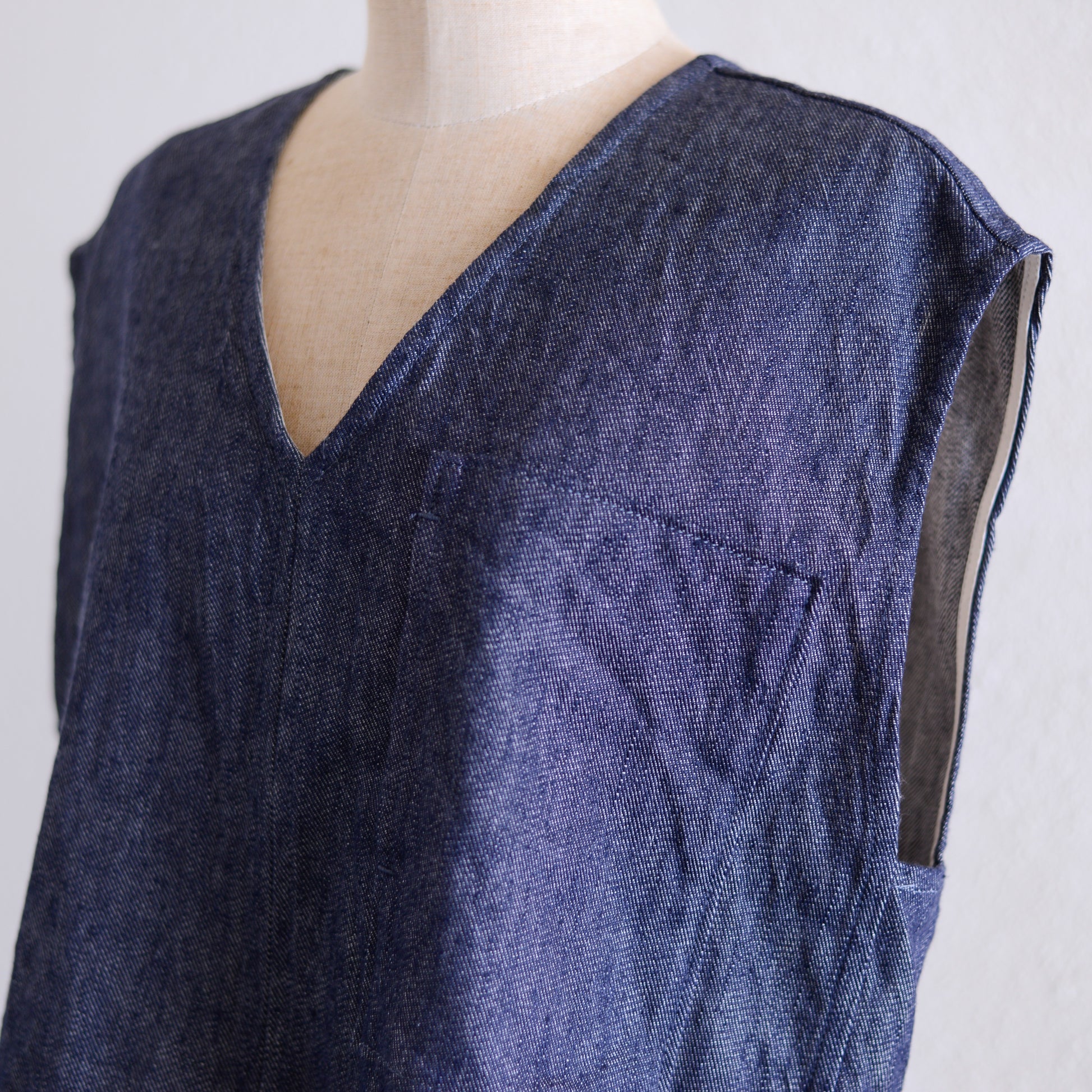 素材は、リネンとコットンを混紡した中厚地のデニム生地。