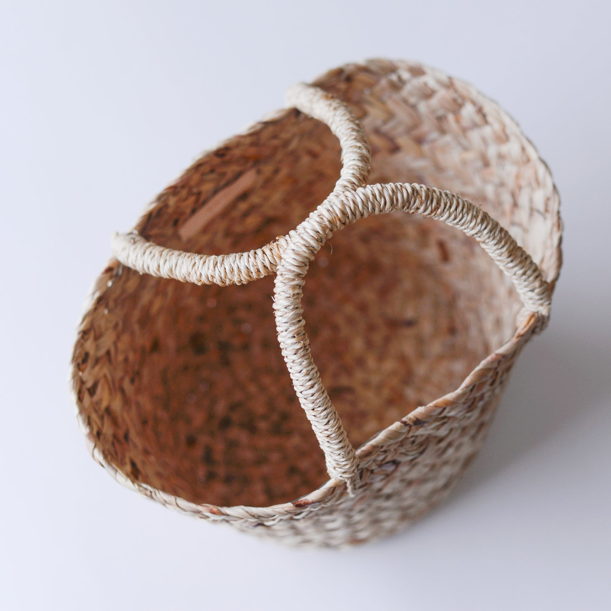 バッグは、フィリピン原産のバショウ科植物から採れる天然繊維、アバカ(ハンドル)とルピス(本体)を使って編み上げています。