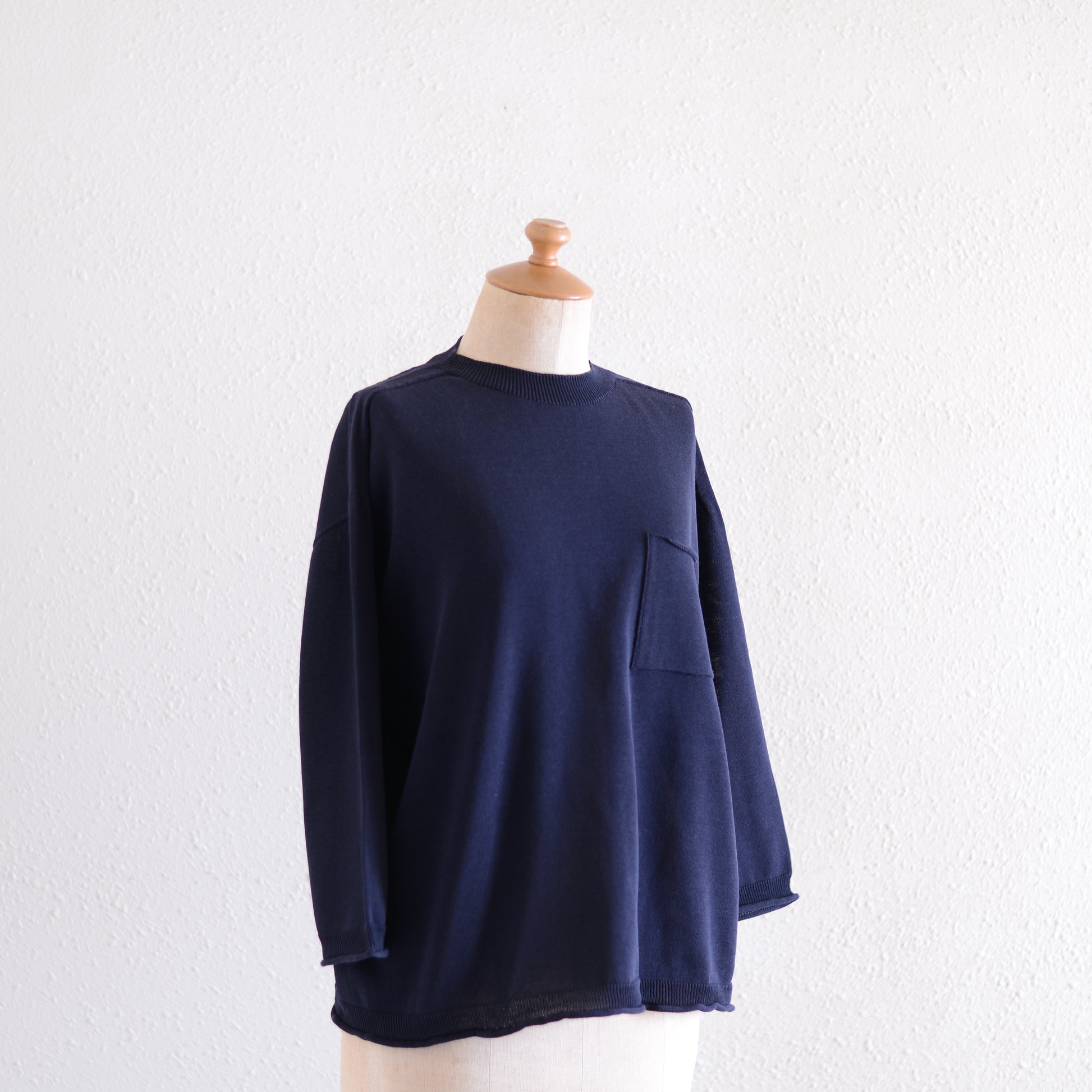 丸首のすっきりとした開き気負わず着られるのに、だらしなく見えない絶妙なバランスで重宝します
