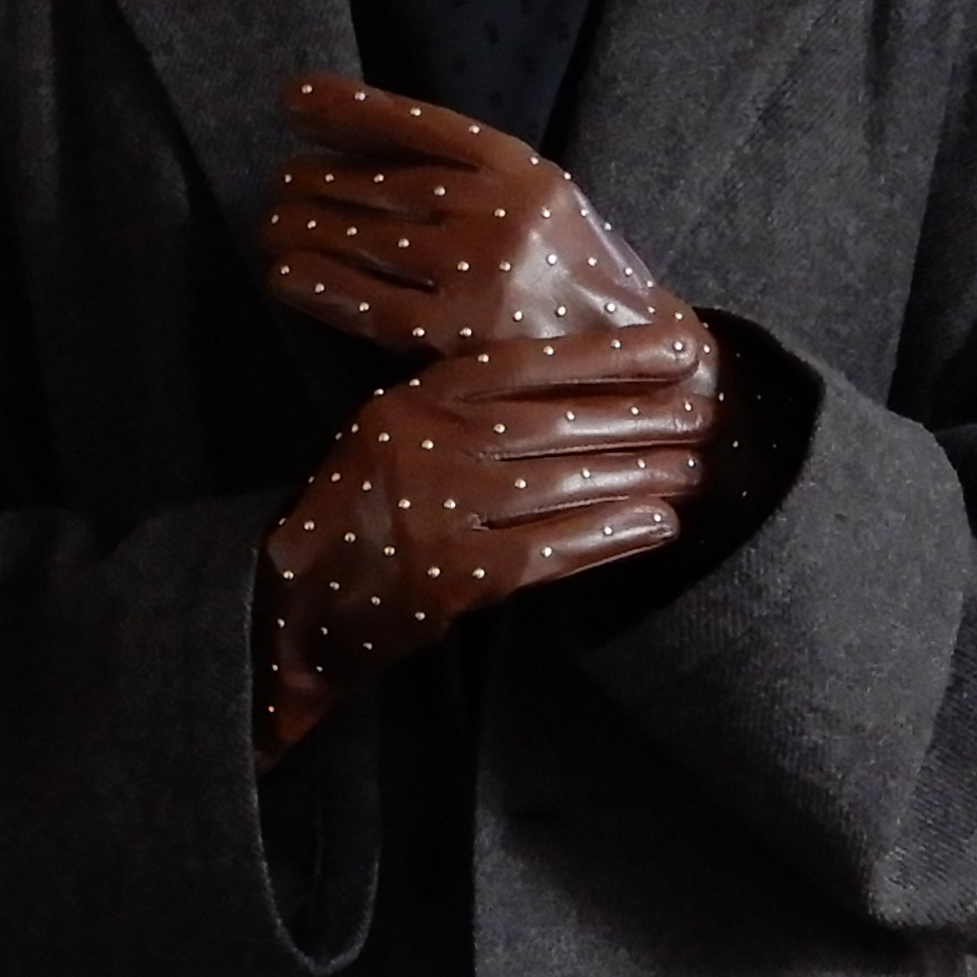 シルクライニングスタッズレザーグローブ Brown