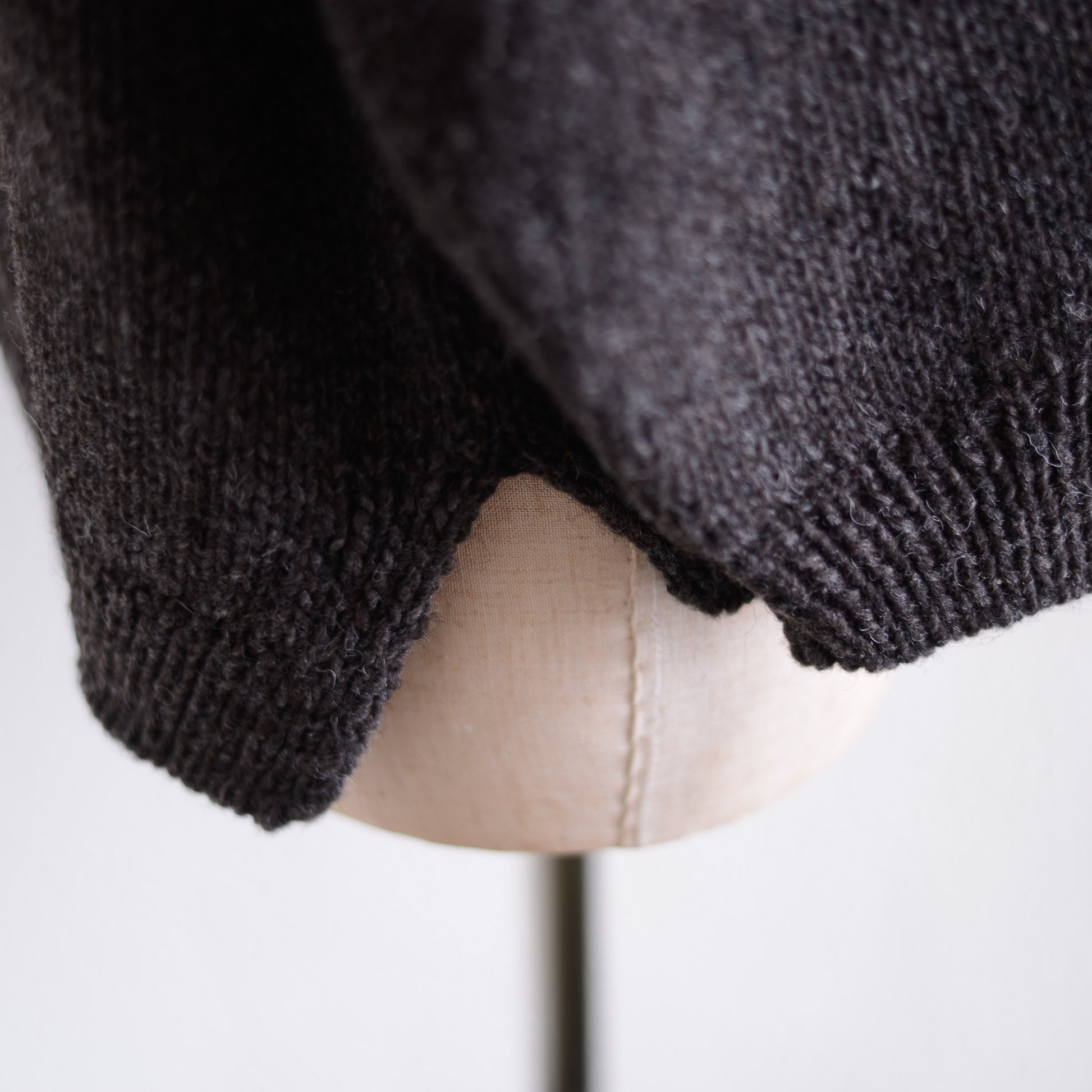 手編みならではの凹凸感が、シンプルさの中に静かな存在感を与えます。