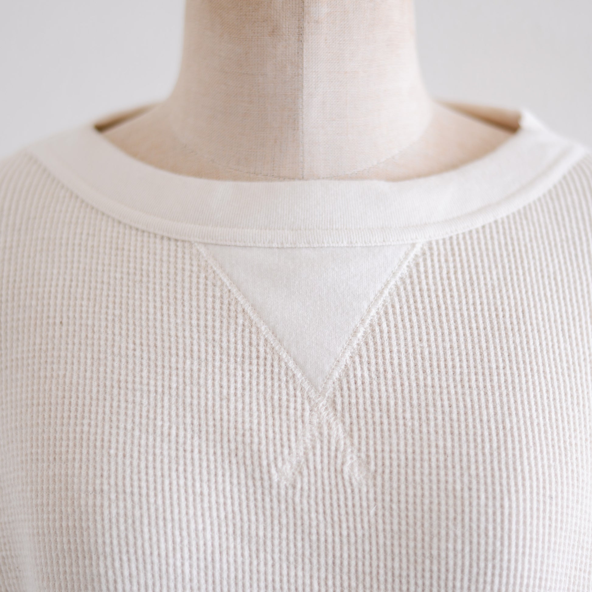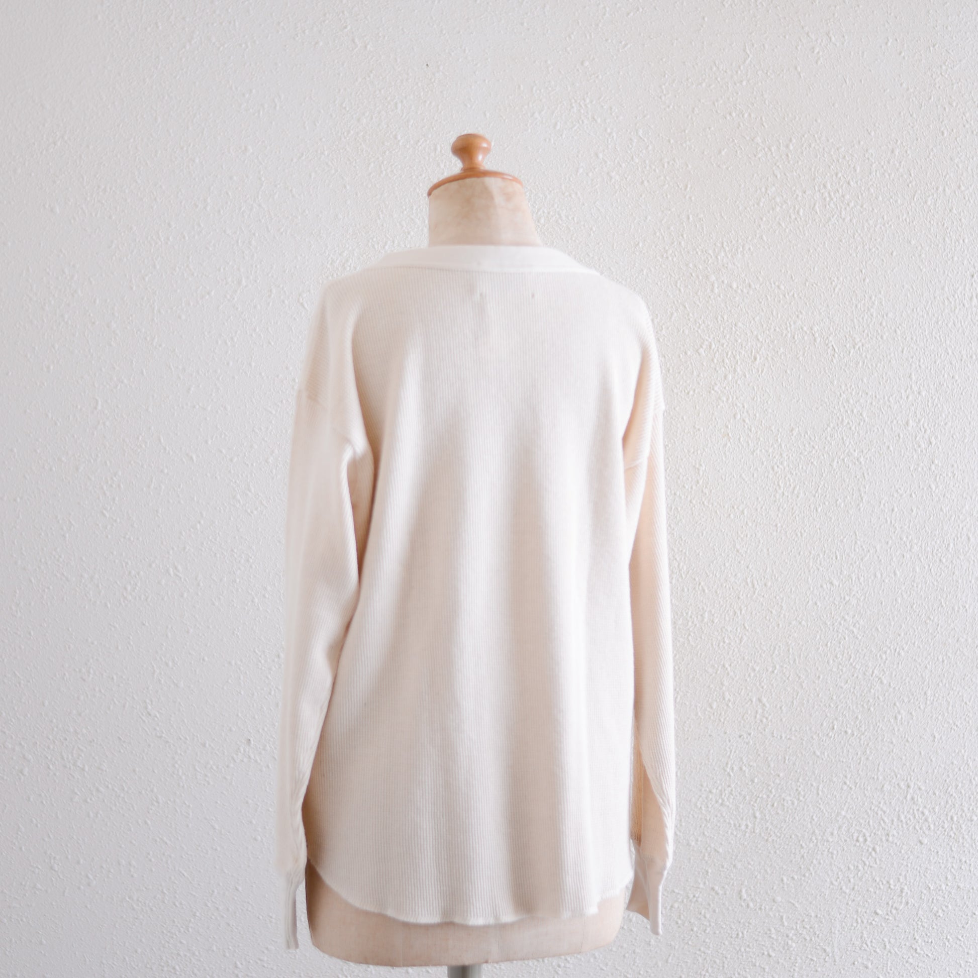 鎖骨が少し覗く開き具合で、インナーとのレイヤードも◎。