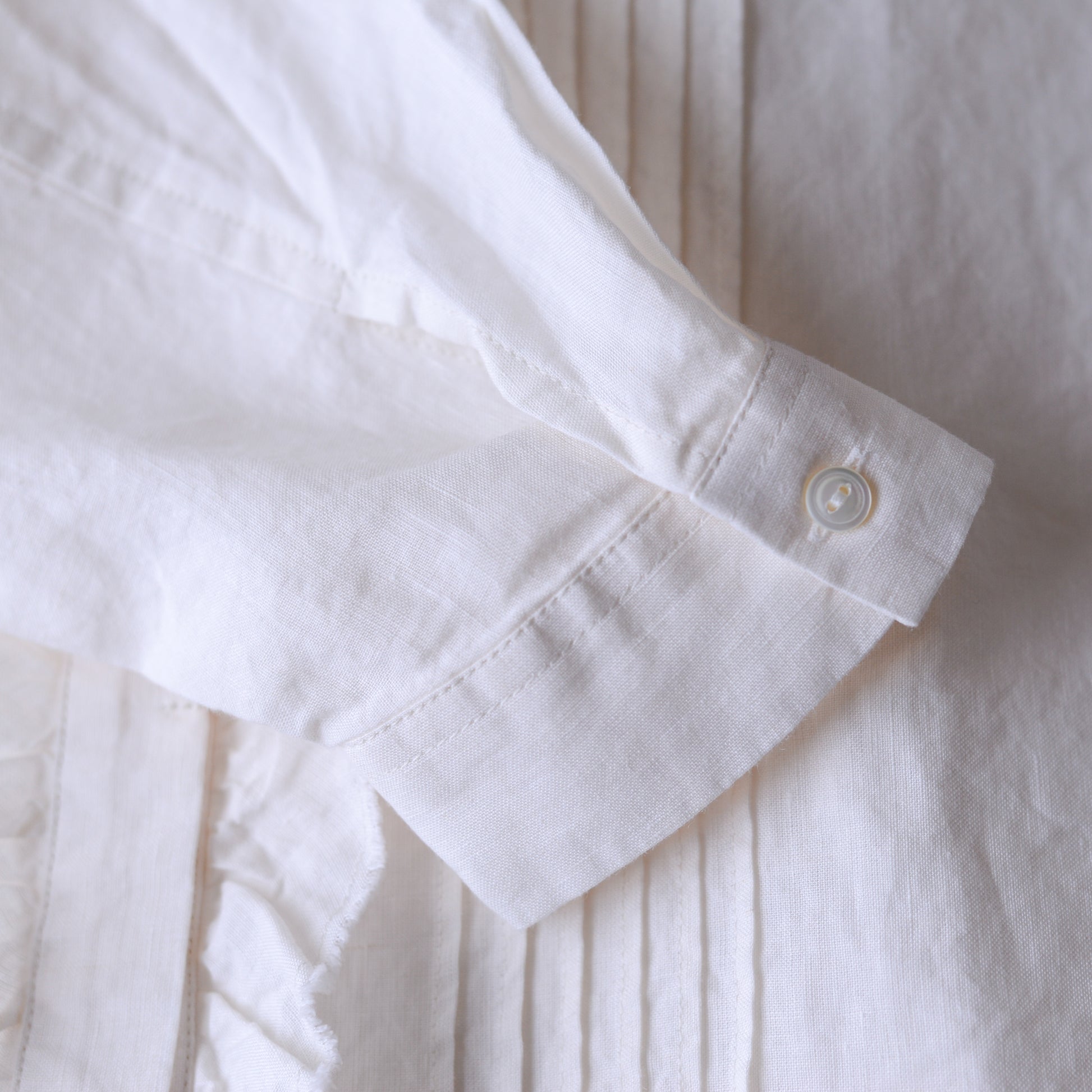 リネンラミータックフリルブラウス Off White