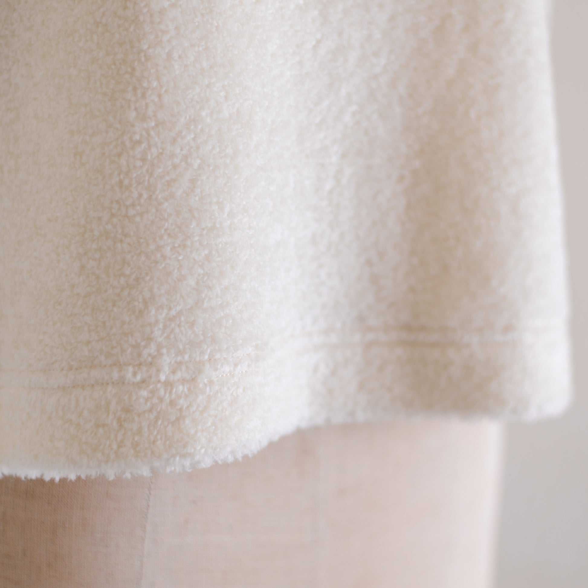 두꺼운 기모 소재가 공기를 충분히 포함하고 가볍고 부드러운 착용감을 실현합니다.