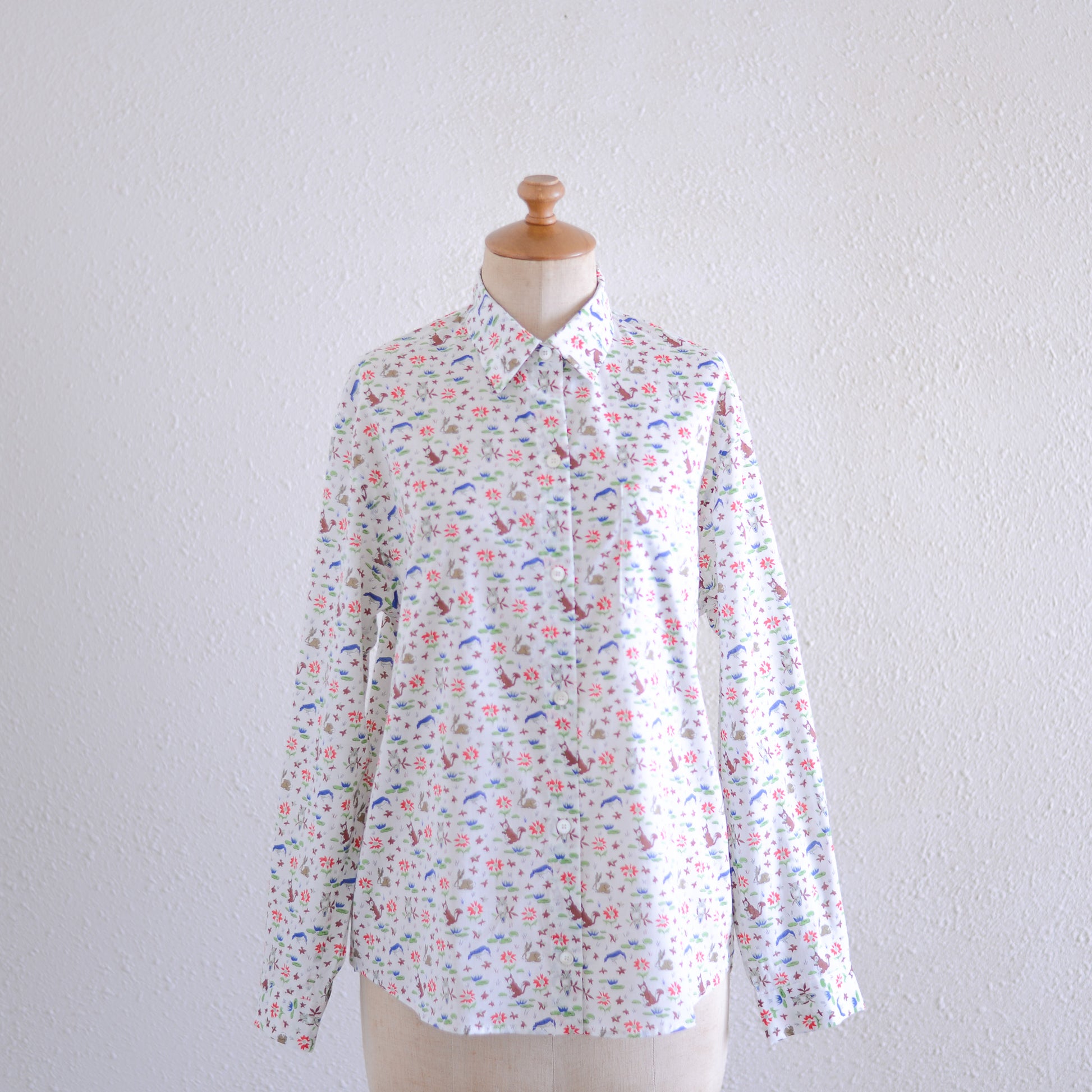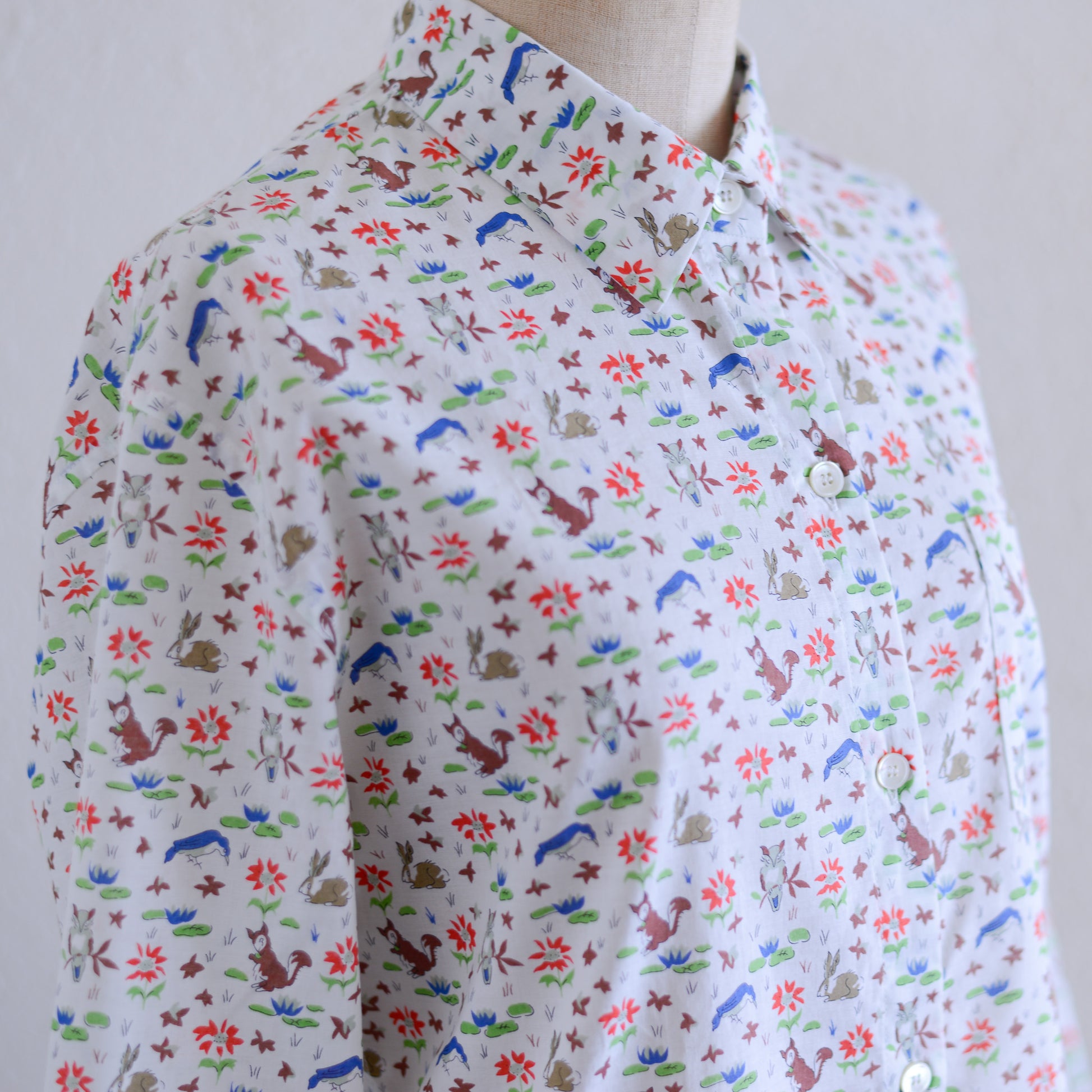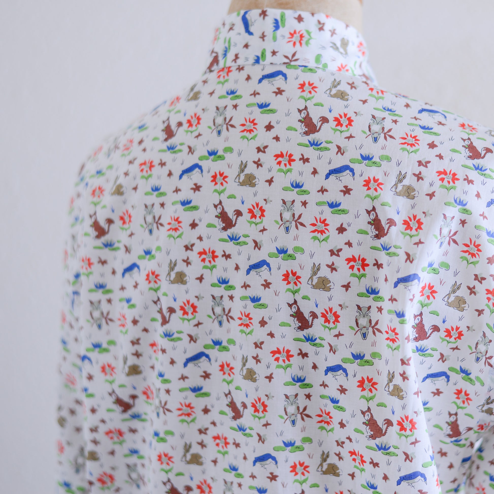 숲의 속삭임이 들리는 사랑스러운 동물들이 늘어선 리버티 프린트 셔츠.
