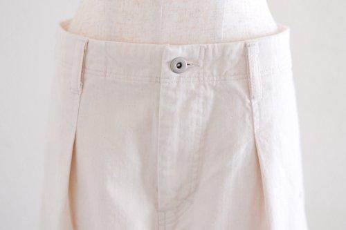 모양은 밑단을 향해 약간 가늘어지는 둥근 와이드 폭.