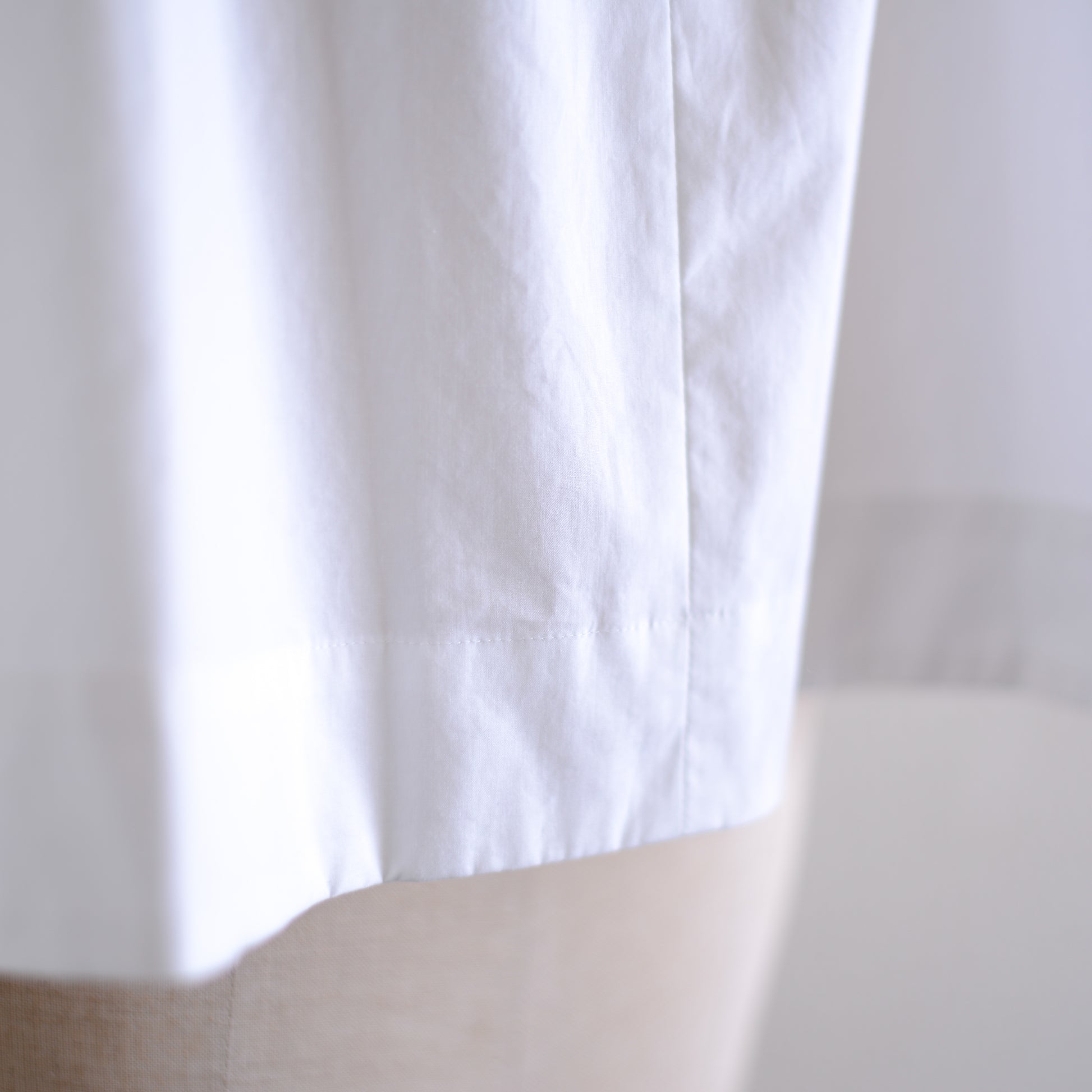高密度に織り上げたコットン100%は、指先で触れた瞬間にわかるほどハリがあり、ほんのりと艶を帯びた上品な表情。