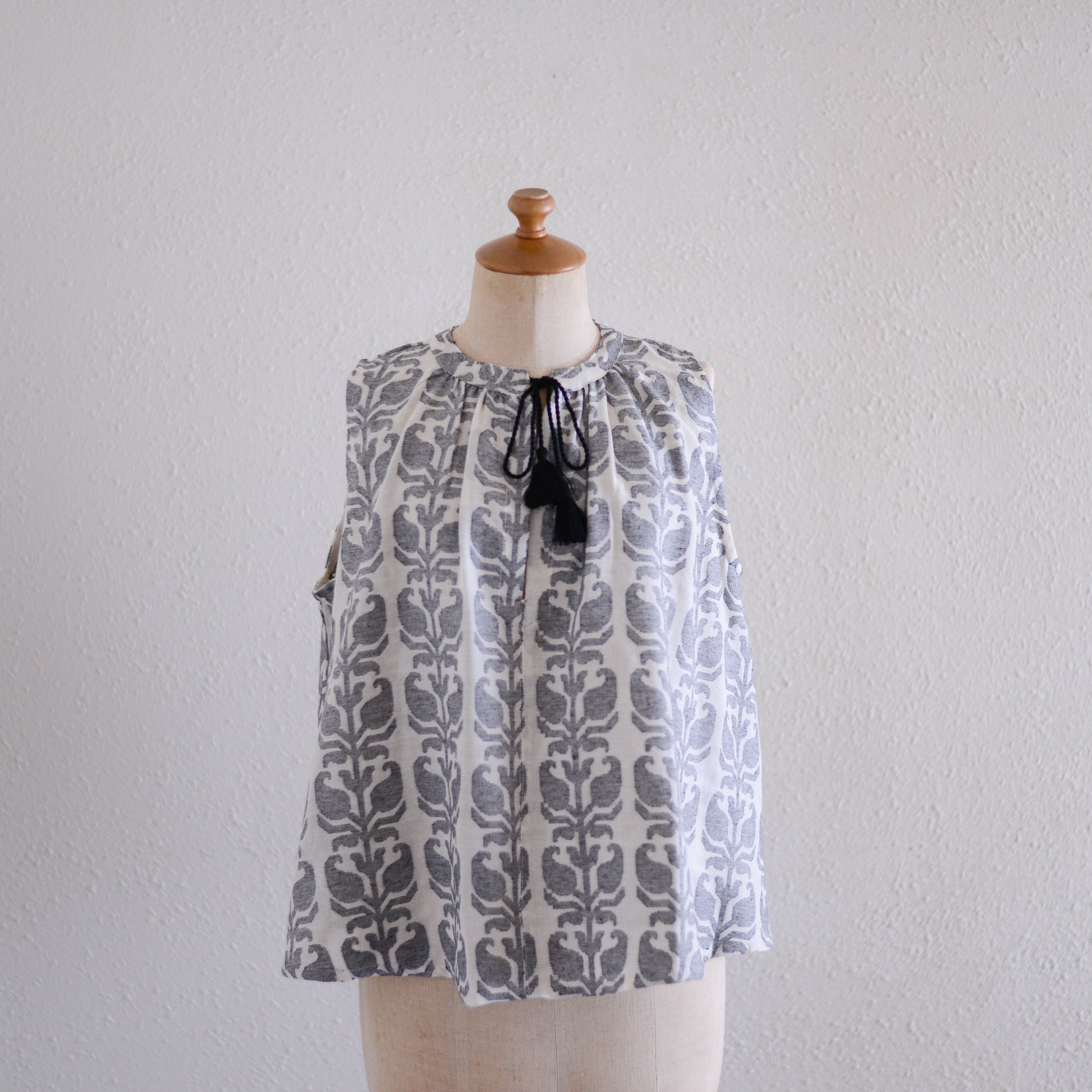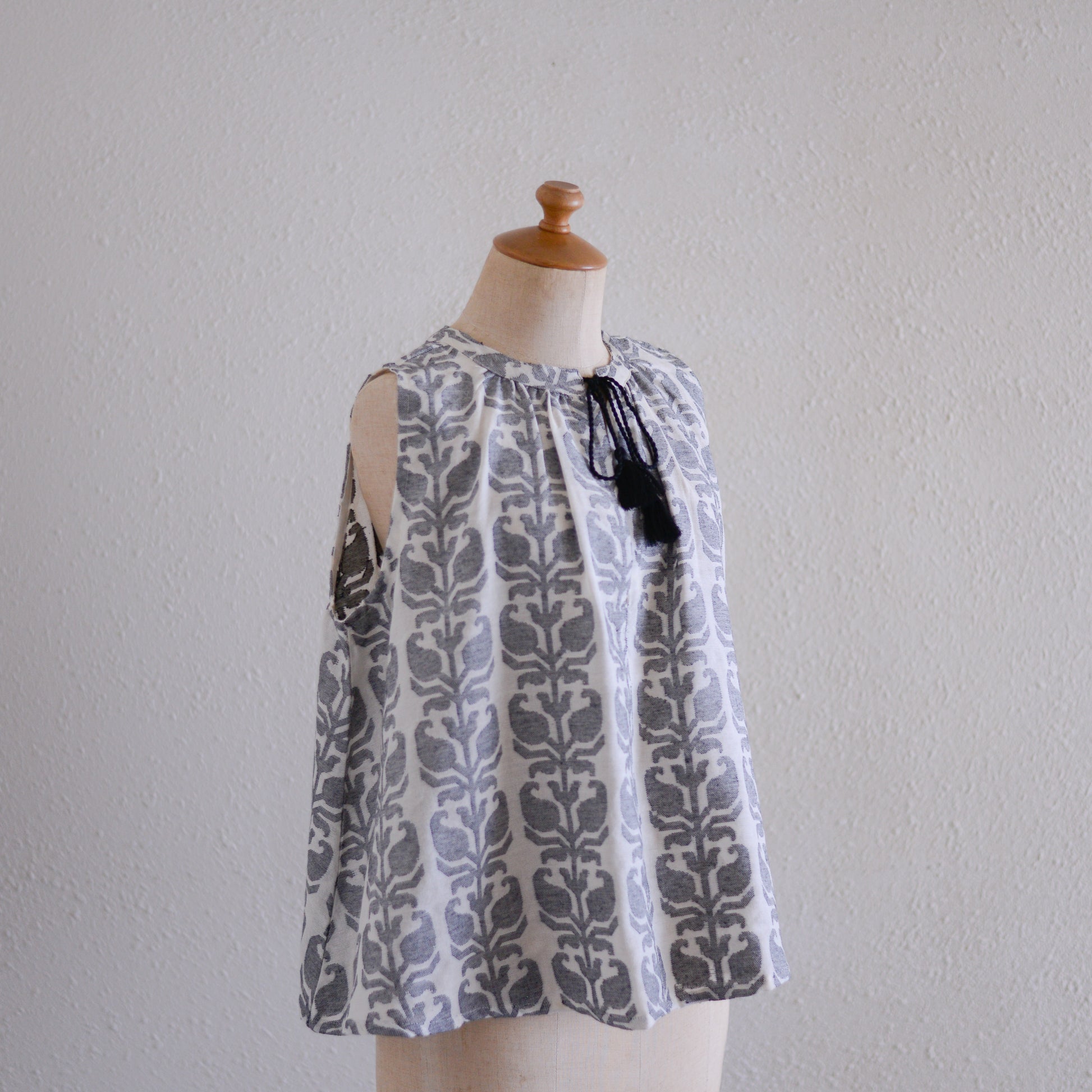 薄手のジャガードが生む柔らかな凹凸が、涼しげなスリーブレスに上品な存在感をプラス。