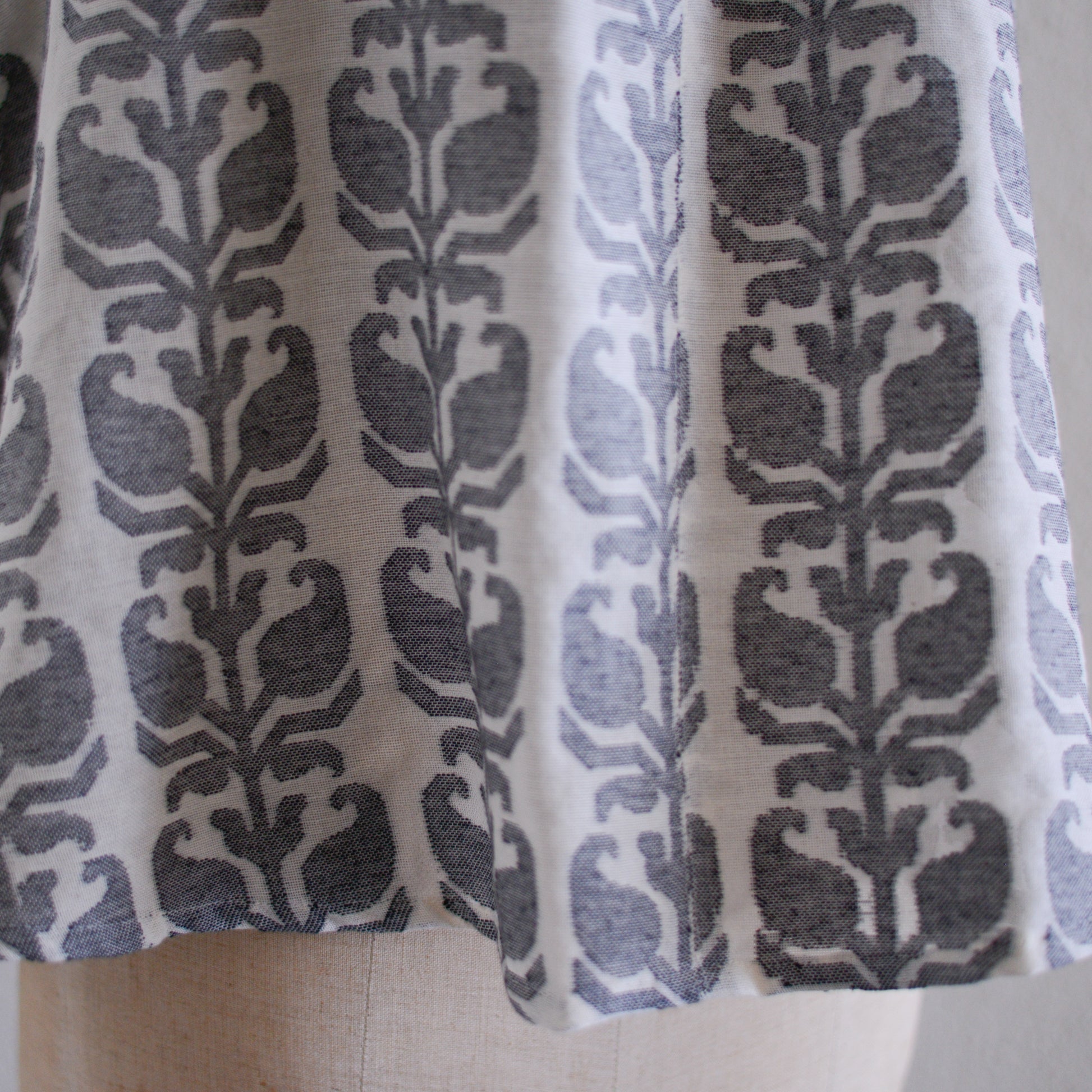ジャガード織りと聞くと厚手のものを想像される方も多いですが、こちらは薄手で光を通すほどの軽やかさ。