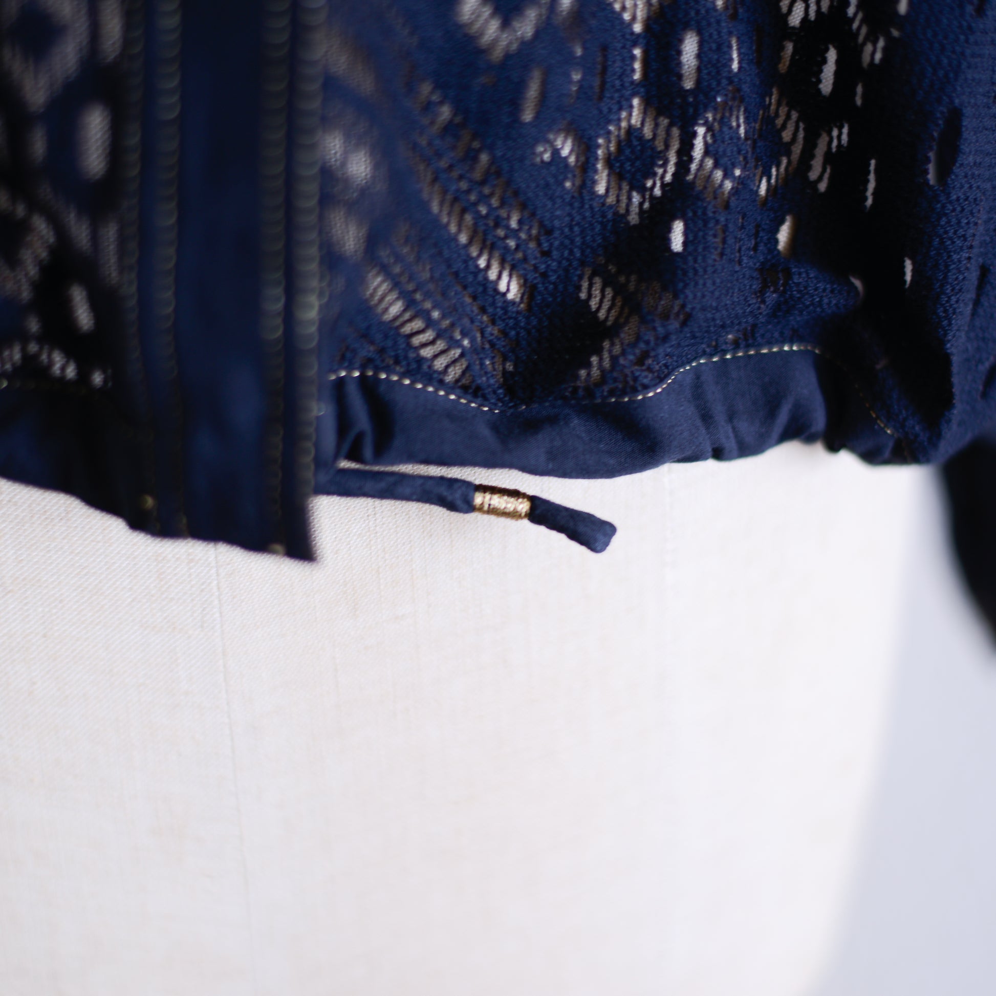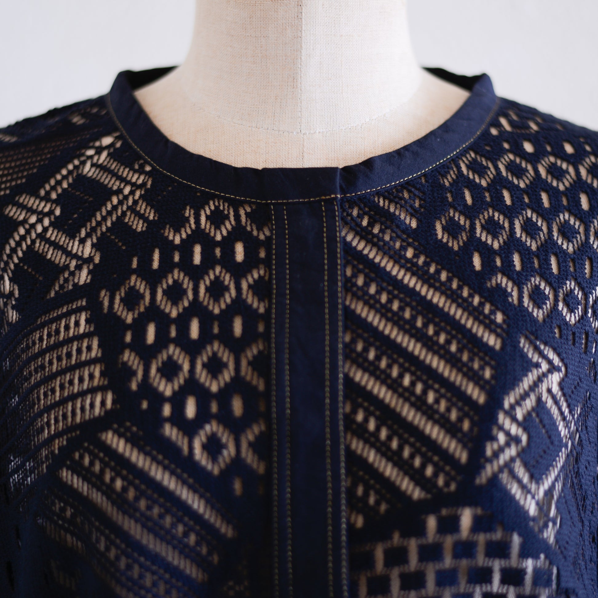 コットンとナイロンの混紡素材を使用した編み地は、柄を組み合わせた遊び心感じるレースと相まって、見た目にも触れ心地にも軽やか。