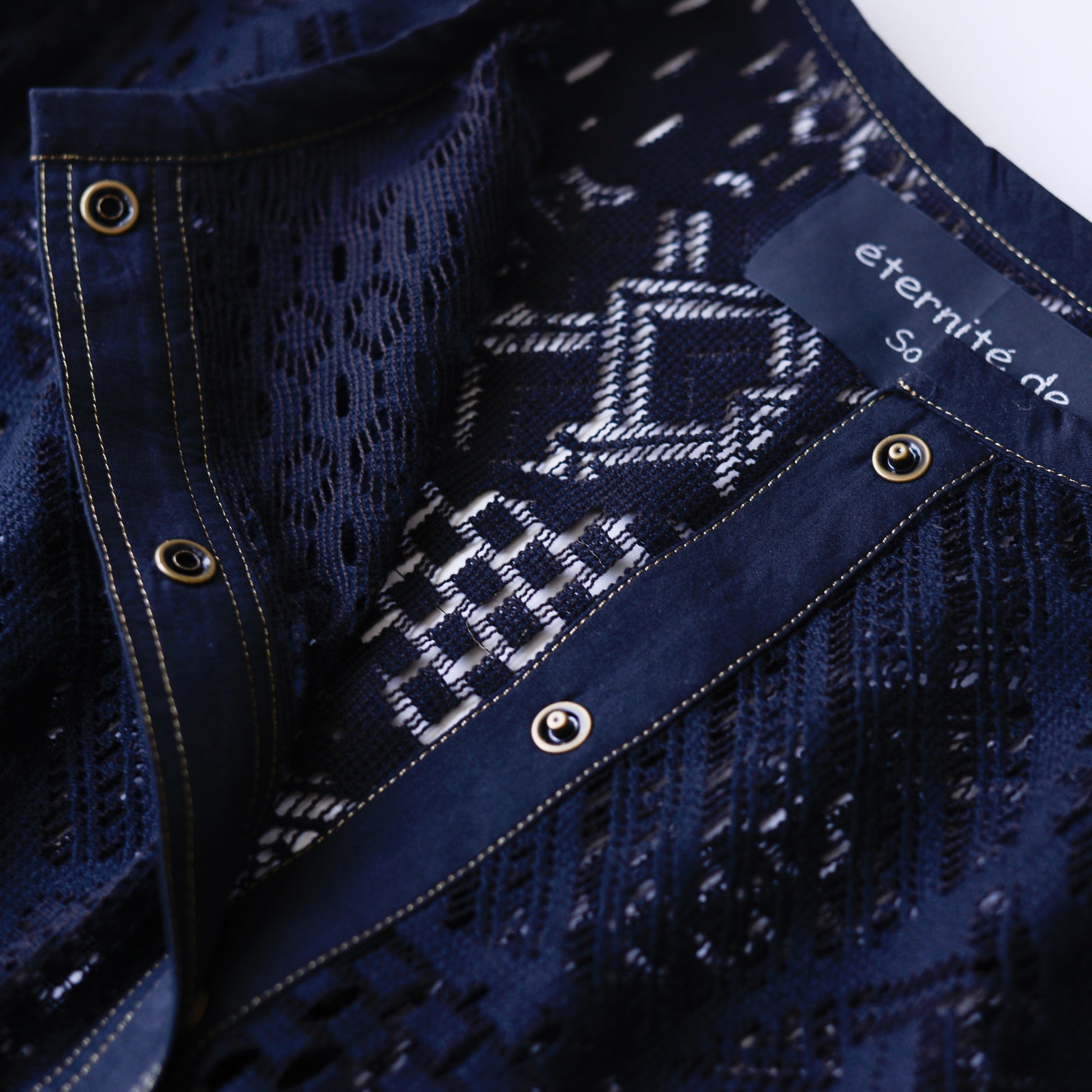 クロシェならではの透かし模様は通気性にも優れ、ほんのりと暖かくなり始める、季節の変わり目の空気をふわりと通す心地よさ。
