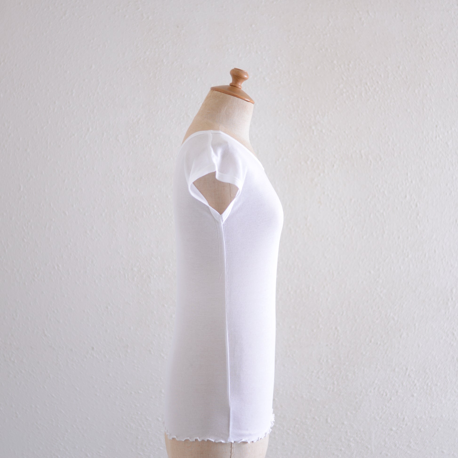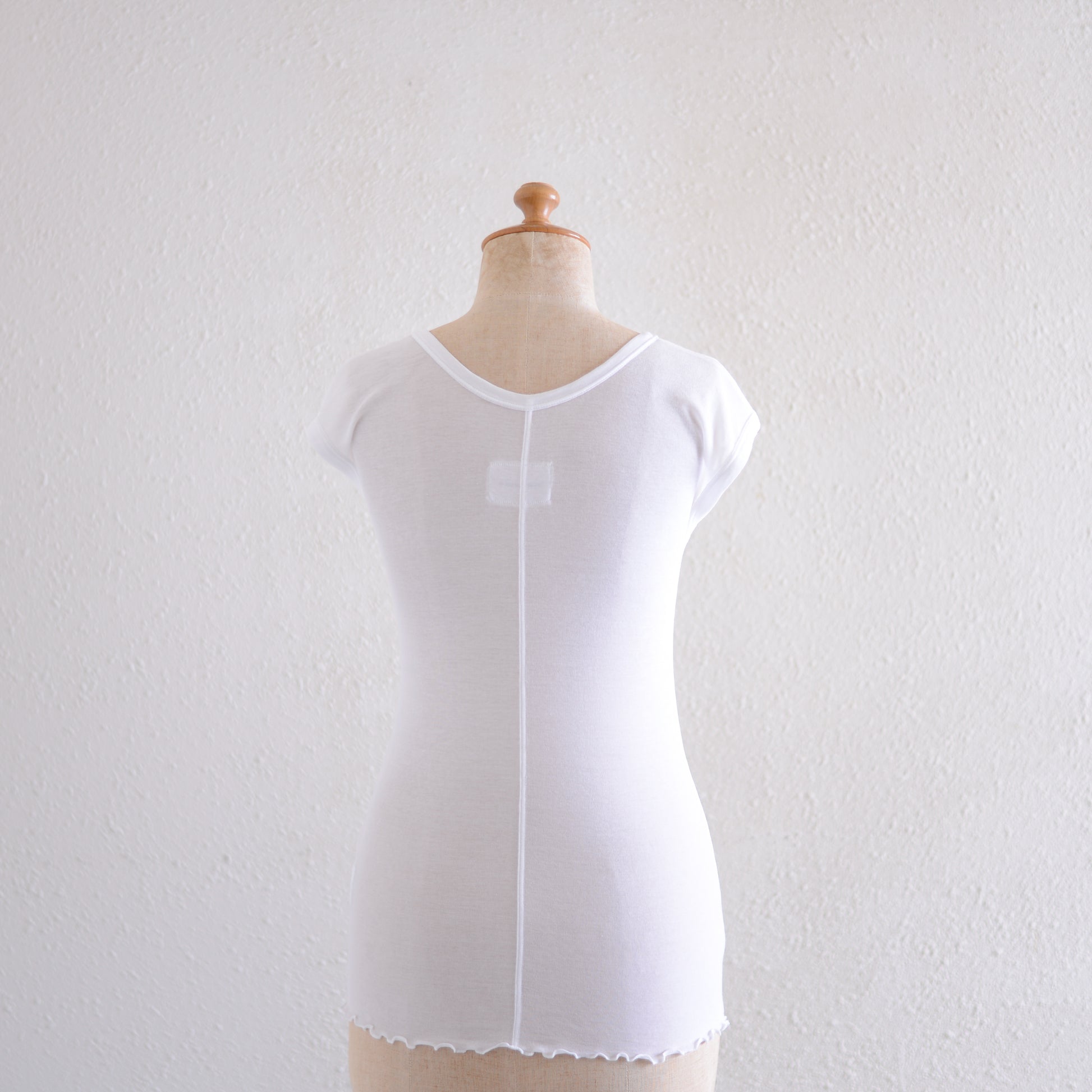 身体に程よく馴染むシルエットは、動きに合わせて気持ちよく寄り添いながらも、屈んだときに胸元が気になりにくい安心感があります。
