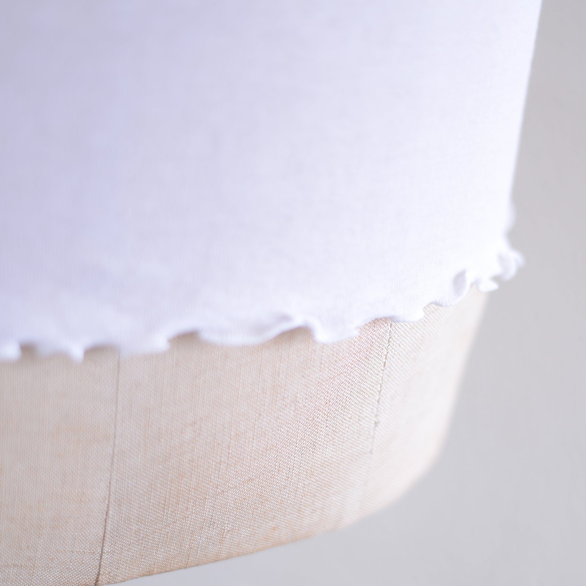 レイヤードした際もちらりと覗かせることで、コーディネートにほんの少し甘さを加えてくれます。