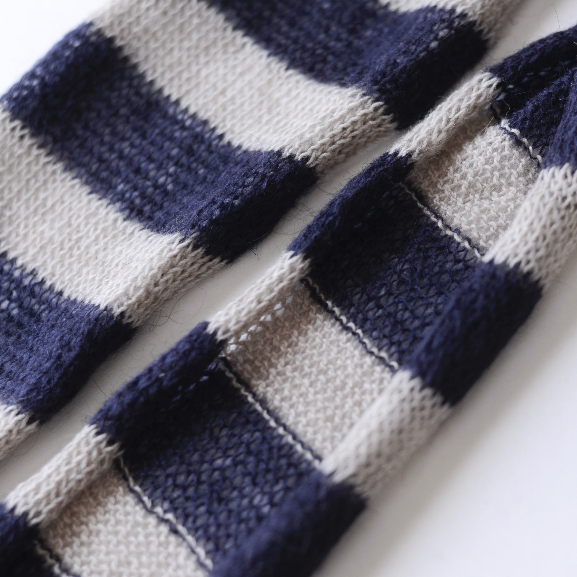 落ち着いたトーンに、さりげない遊び心を添えてくれる3色展開のボーダー模様。