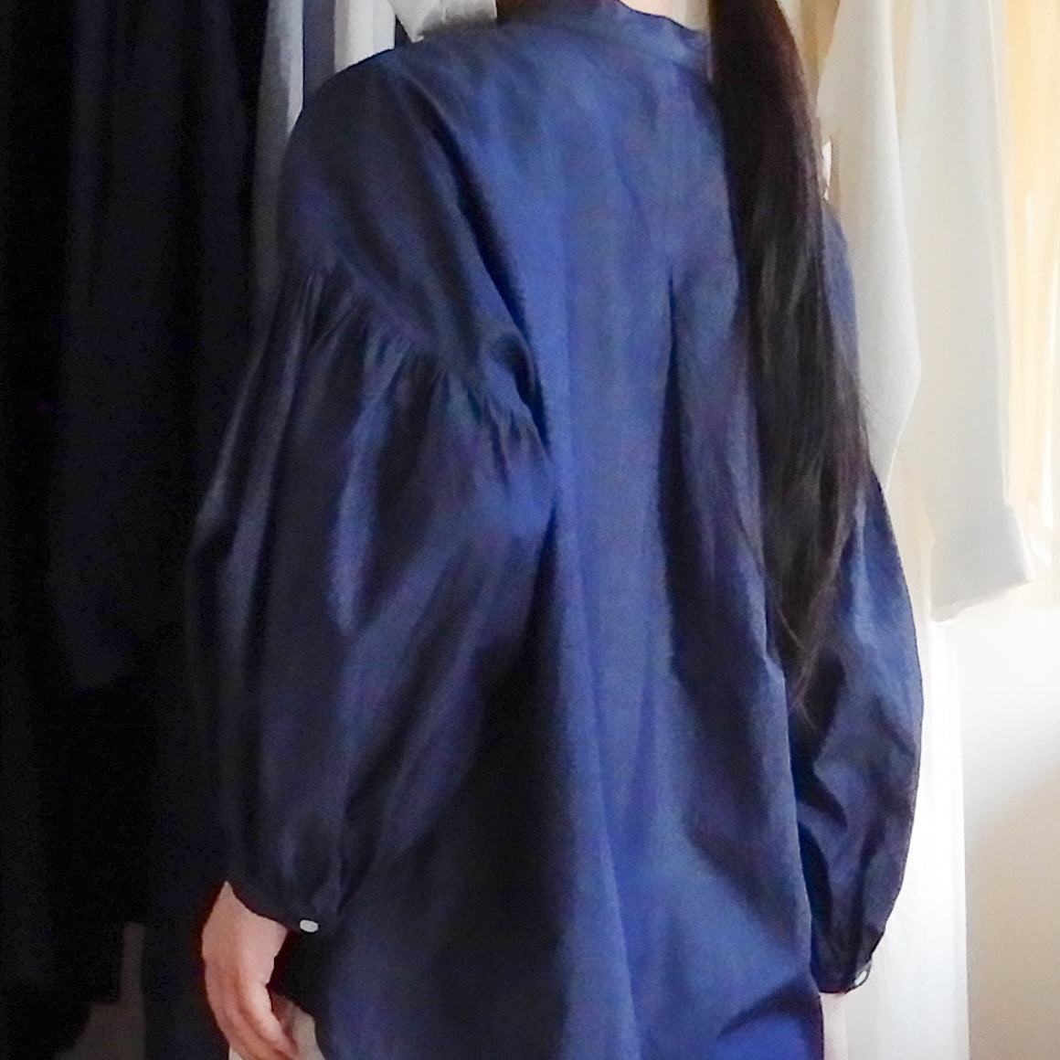 スリーブは、付け根と袖口に細かなギャザーを寄せ、ふっくらと丸みのあるシルエットに。