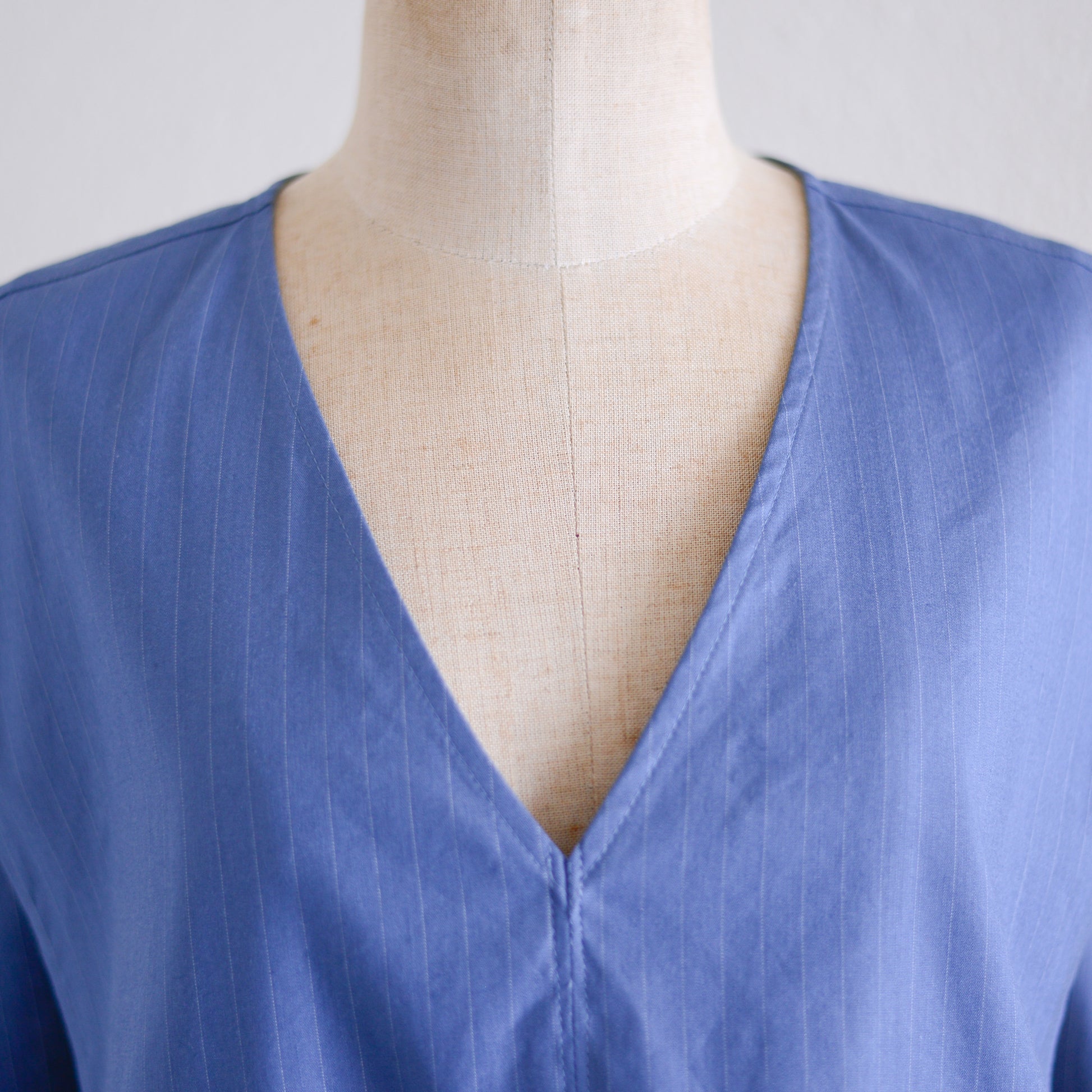 リネンレーヨンVネックタックプルオーバー Blue