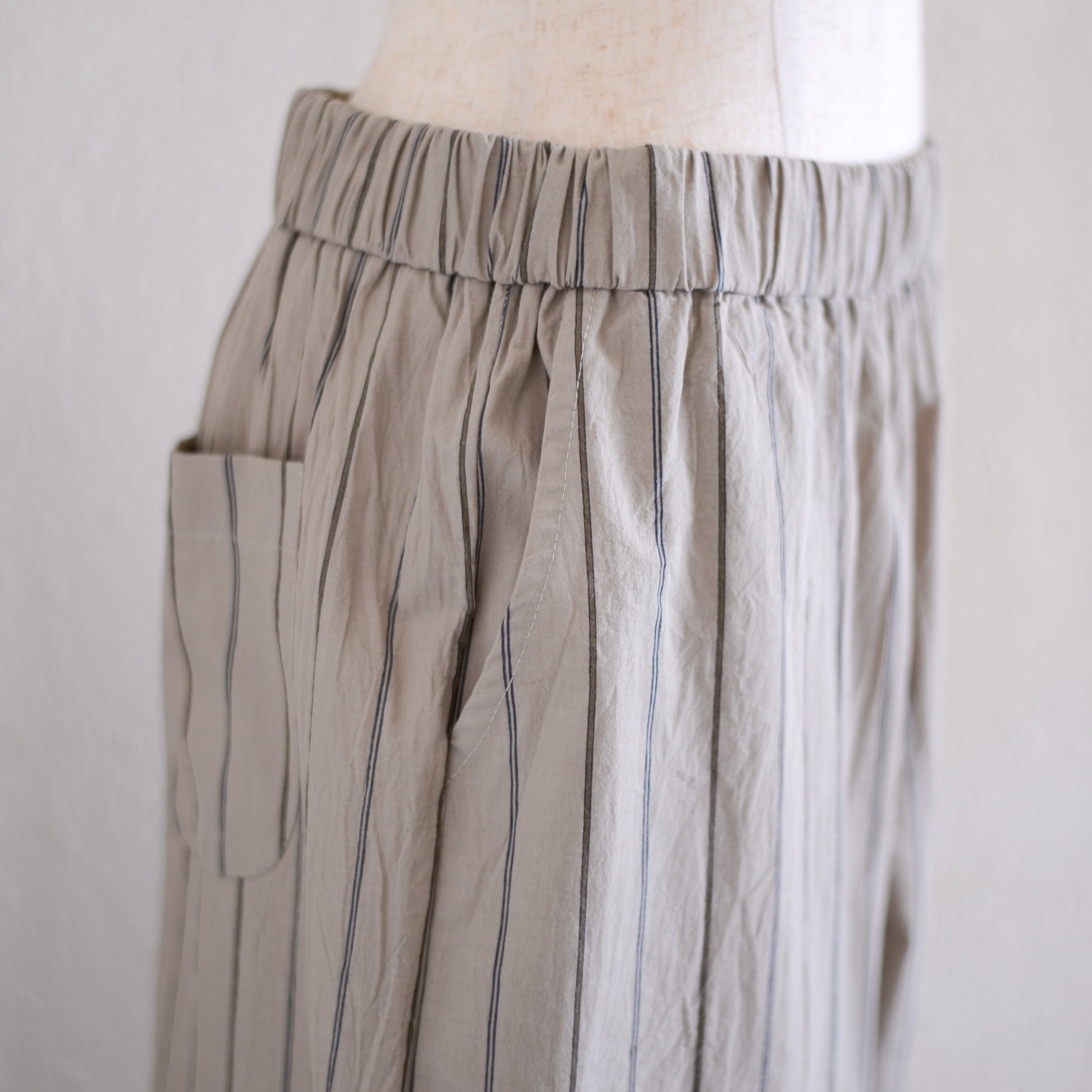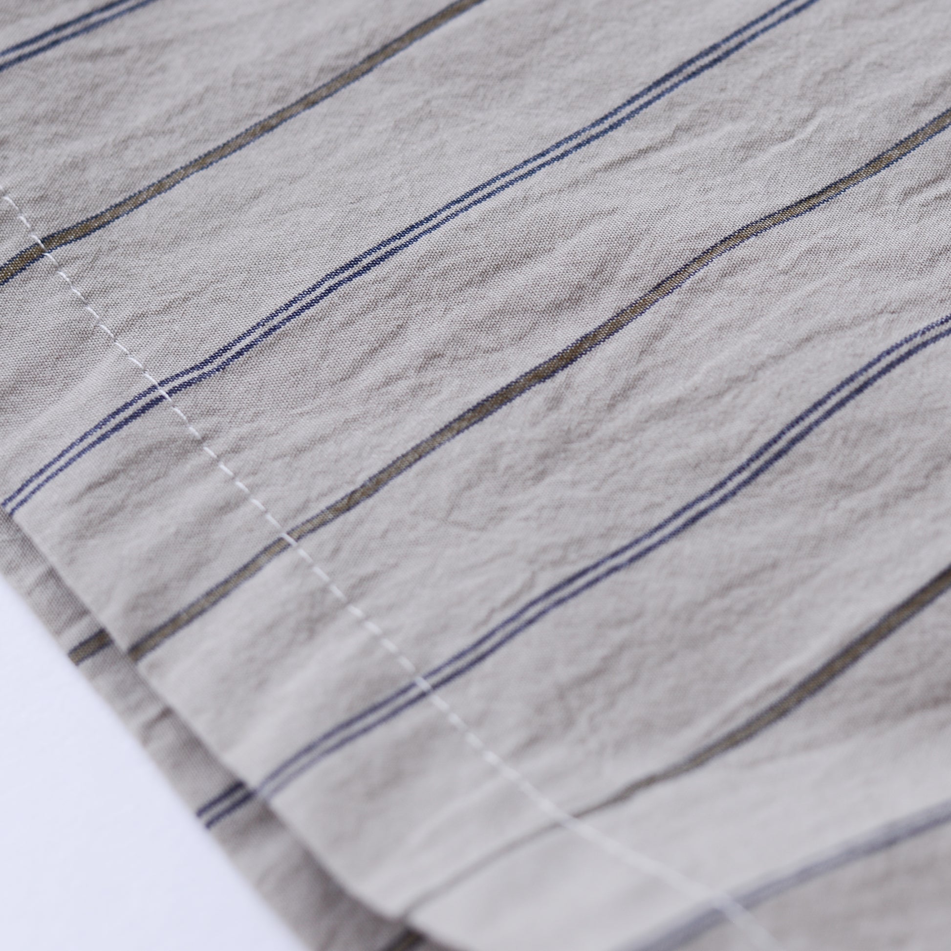 グレイ地にブルーとブラックのラインが走るストライプは、すっと縦に流れるラインが大人っぽく、どこか知的な雰囲気。