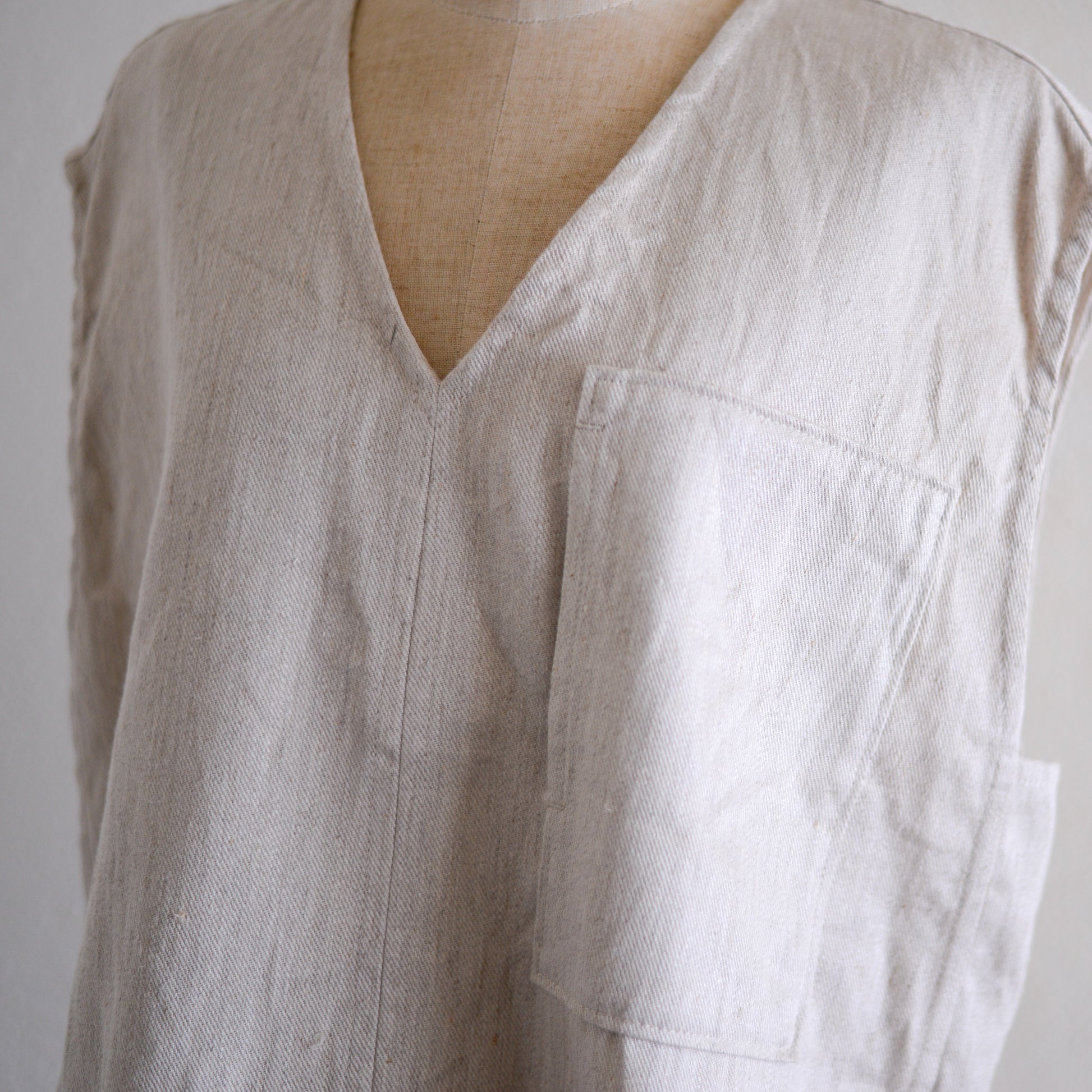 素材は、リネンとコットンを混紡した中厚地のデニム生地。